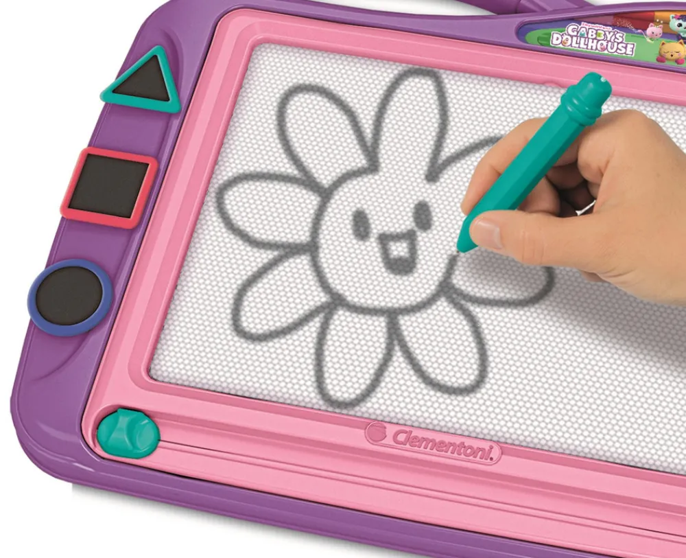 Et helt magisk tegnebræt til at tegne uendeligt og have det sjovt med figurerne fra Gabby’s Dukkehus. Skriv, tegn og slet så meget du vil! Med et praktisk håndtag til at bære det, hvor end du vil, og tre forme til at berige dine kreationer.