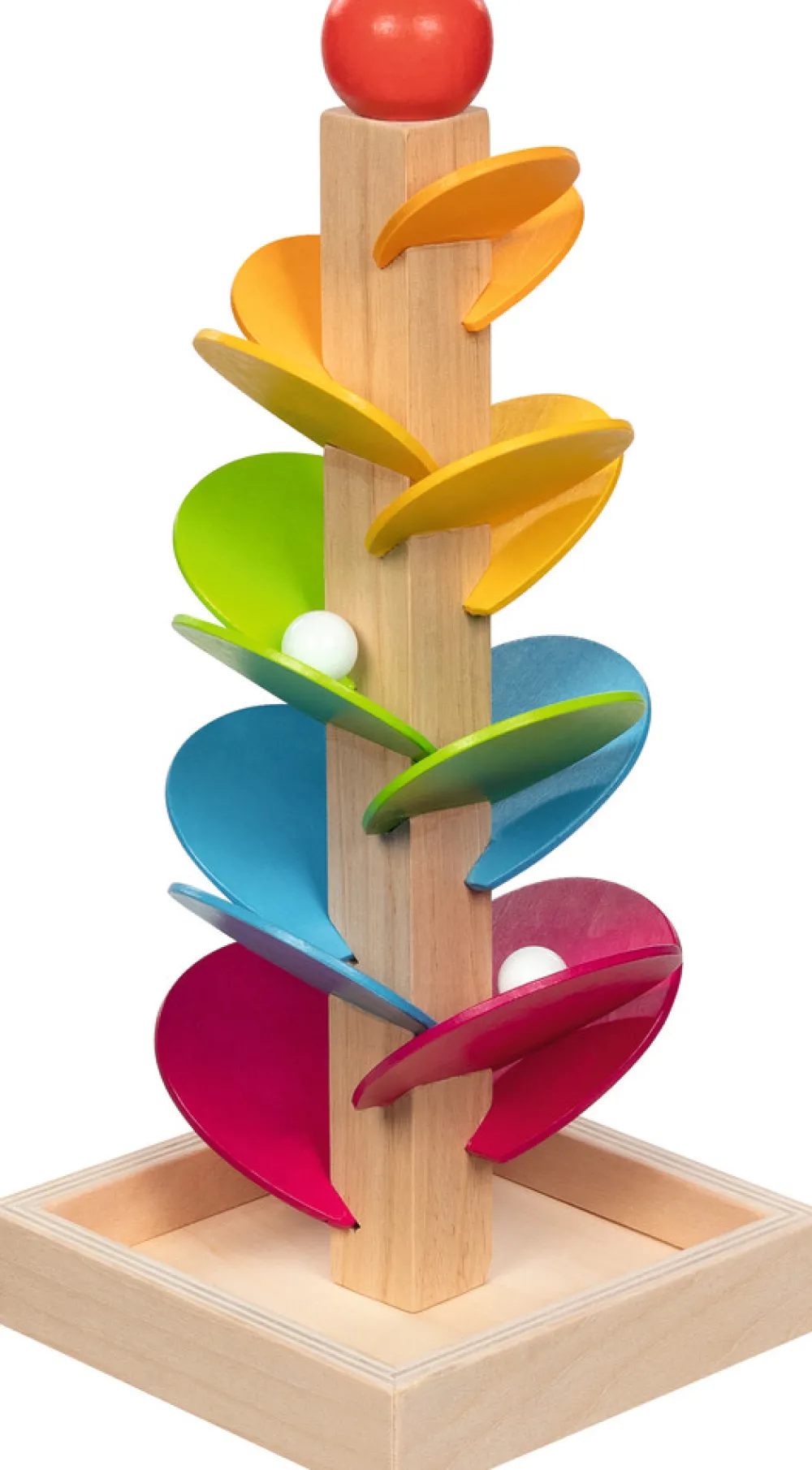 Kuglespil med lydkaskader. De små kugler kan opbevares i bunden af kuglespillet, så de ikke bliver væk.
