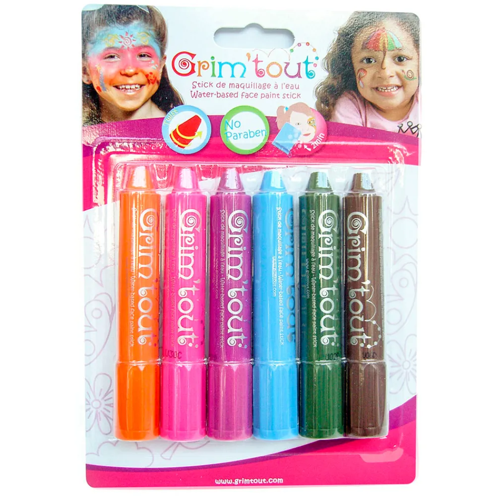 Grimsticks fra Grimtout er lette at gå til selv for små børn takket være deres twist system der fungerer ligesom en læbestift. De meget bløde sticks forbliver rene i emballagen, og kan let vaskes af ansigt og tøj med lunt vand og en lille smule sæbe. Grimsticks er produceret i Europa, og er helt fri for parabener. De er uden duft og fedter ikke. Børnene kan have det sjovt, og samtidigt minimere risikoen for allergi. Grimtout produkter er i fuld overensstemmelse med de kosmetik-standarder og er CE-certificeret.