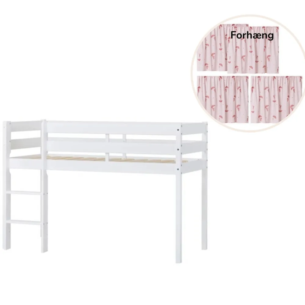 Forhænget passer til halvhøje & køjesenge med madrasstørrelse 70×160, 70×190 og 90×200 cm.