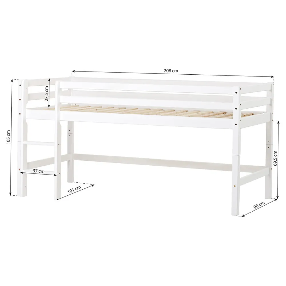 - Sengen leveres med stige, sengehest og lamelbund.