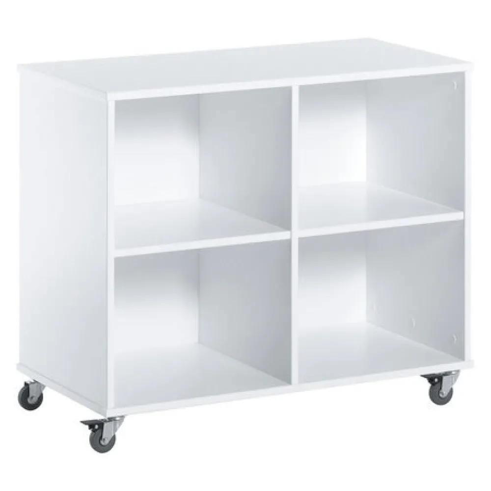 - De forreste hjul kan låses, så reolen står fast.