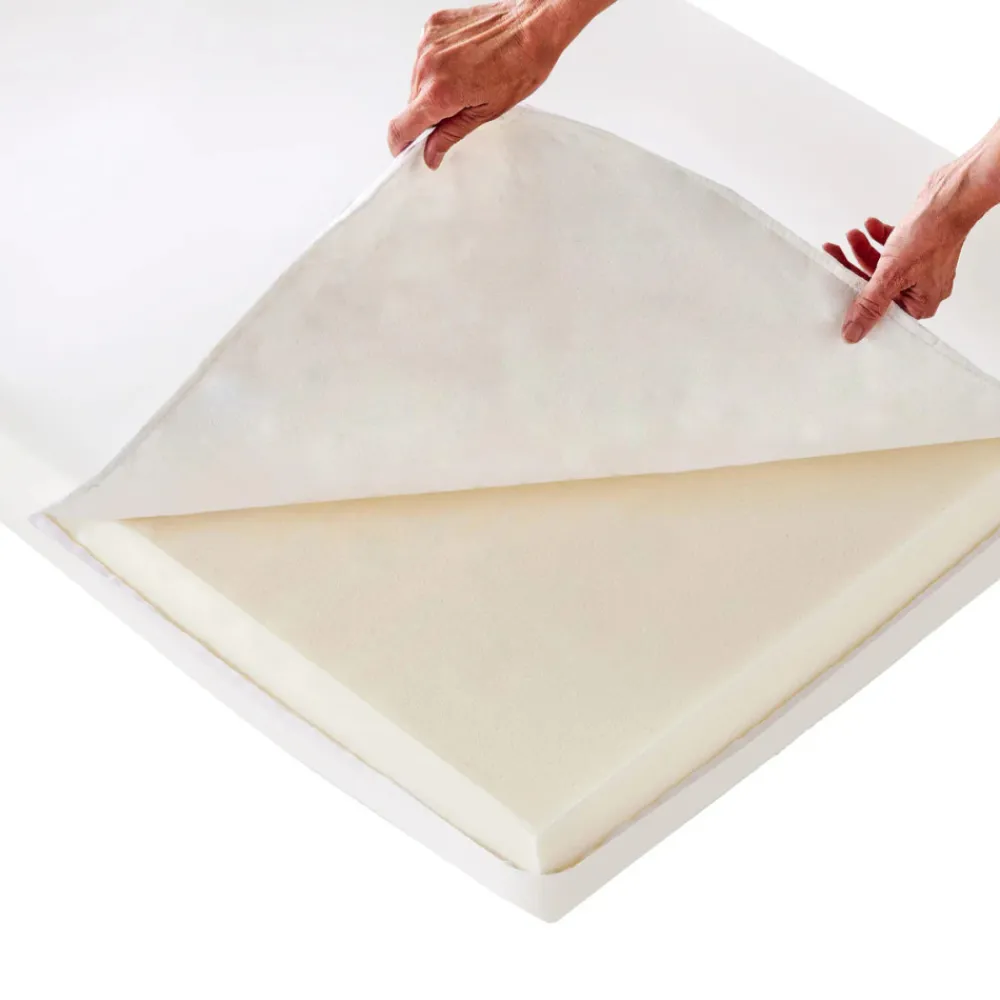 Madrassen leveres med et hvidt bomuldsbetræk i quilt, der har lynlås på tre sider, hvilket gør det nemt og hurtigt at montere.