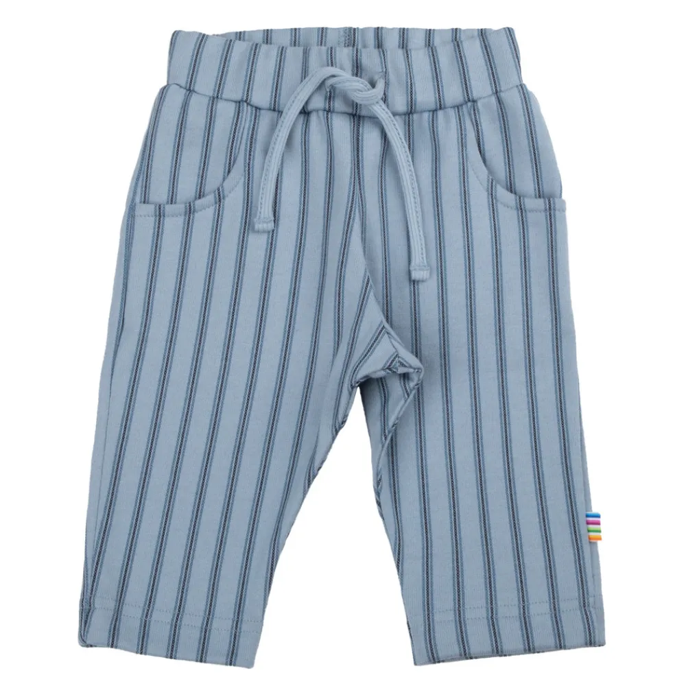 Bred elastik samt bindebånd i taljen. 2 små lommer foran som sød detalje. En blød og stabil økologisk bomuldskvalitet med tæt strikning, meget behagelig at have på. Sød stribet print.