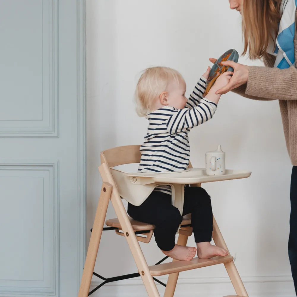 Klapp bakken lægger alt inden for barnets rækkevidde når de sidder i deres smarte Klapp højstol. Det hjælper barnet til lettere at fokusere på det, der er på bakken i stedet for at blive forstyrret af det, der foregår i omgivelserne. Hvis spisningen udvikler sig til noget værre griseri – bordet kan nemlig nemt tages af og kommes i opvaskemaskinen. Klapp bakken er lavet af 50% genanvendt plast fra postindustrielt affald, hvilket medvirker til en reduktion af CO2-udledningen under produktionen på 40%. Materiale Polypropylen (PP-plast), anvendes far ca. 6-36 måneder sammen med sikkerhedsbøjlen.