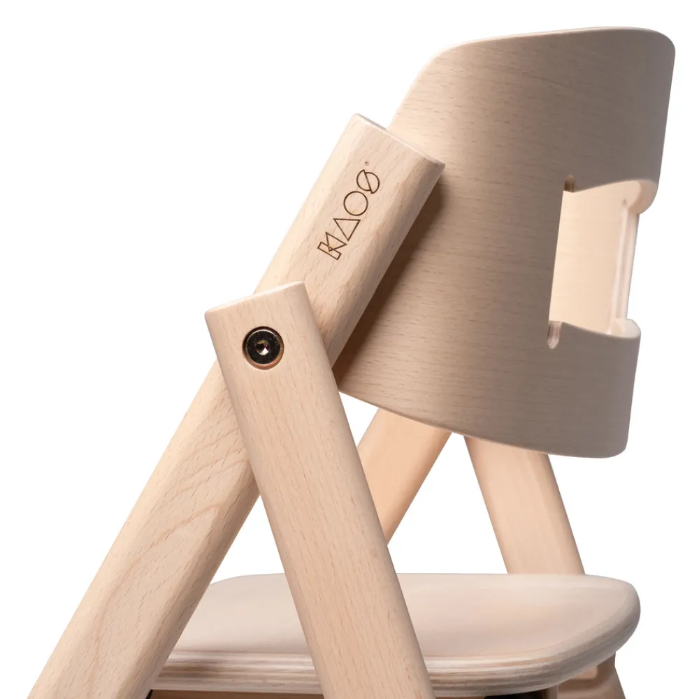 KAOS Klapp er designet til ikke at blive justeret efterhånden som et barn vokser, så det er umuligt at fejljustere noget. De faste stigetrin giver barnet mulighed for at vokse naturligt ind i nye siddestillinger og variere deres ben position. En aktiv siddestilling er god til at opnå den bedst mulige blodcirkulation. Trinene giver også barnet mulighed for at få god balance og fodstøtte.