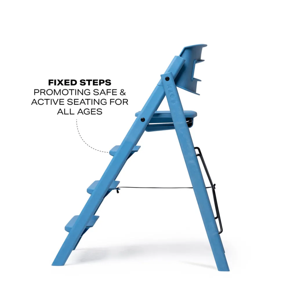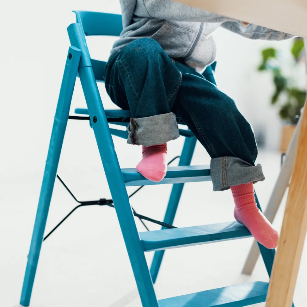 KAOS Klapp er designet til ikke at blive justeret efterhånden som et barn vokser, så det er umuligt at fejljustere noget. De faste stigetrin giver barnet mulighed for at vokse naturligt ind i nye siddestillinger og variere deres ben position. En aktiv siddestilling er god til at opnå den bedst mulige blodcirkulation. Trinene giver også barnet mulighed for at få god balance og fodstøtte.