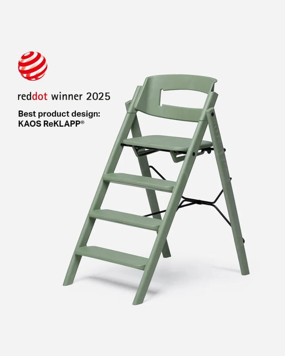 KAOS Klapp højstolen vil være en smuk tilføjelse rundt om spiseborderet. Dens foldbare design gør den til en fantastisk pladsbesparende højstol, der også er perfekt bærbar lige til at tage med sig. De faste stigetrin er unikke og gør det nemt for barnet at klatre op og ned af KAOS Klapp højstolen på egen hånd. Barnet får en ergonomisk og aktiv siddeplads og hviler benene naturligt ved de forskellige trin, når de vokser. KAOS Klapp højstol til børn kommer færdig samlet i æsken. Bare fold stolen ud, klik sædet i låseposition, og den er klar til brug. Den er nem at holde ren på grund af dens glatte og solide finish. Klapp er en moderne designklassiker, der holder hele barndommen. KAOS Klapp er designet af den prisvindende norske produktdesigner Ole Petter Wullum.