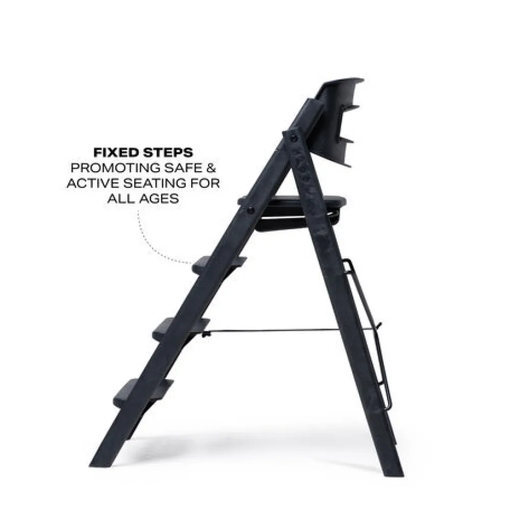 Kaos højstol: En smuk tilføjelse rundt om spiseborderet. Dens foldbare design gør den til en fantastisk pladsbesparende højstol, der også er perfekt lige til at tage med sig. De faste stigetrin er unikke og gør det nemt for barnet at klatre op og ned af KAOS Klapp højstolen på egen hånd. Barnet får en ergonomisk og aktiv siddeplads og hviler benene naturligt ved de forskellige trin, når de vokser. Bare fold stolen ud, klik sædet i låseposition, og den er klar til brug.