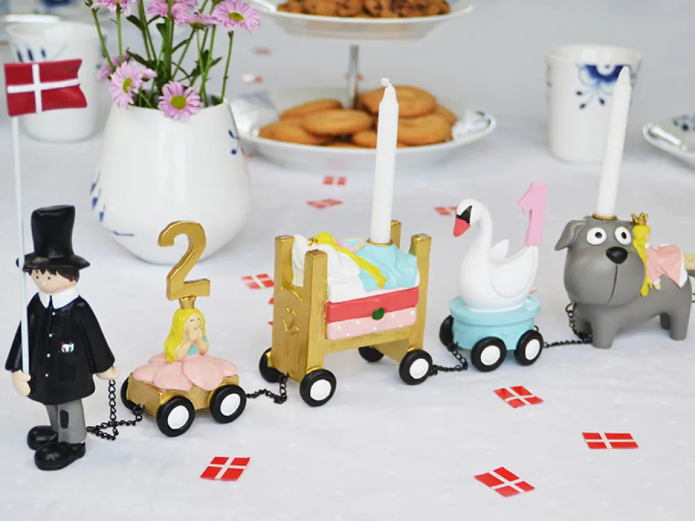 Fødselsdagstog med figurer fra H. C. Andersens eventyr.