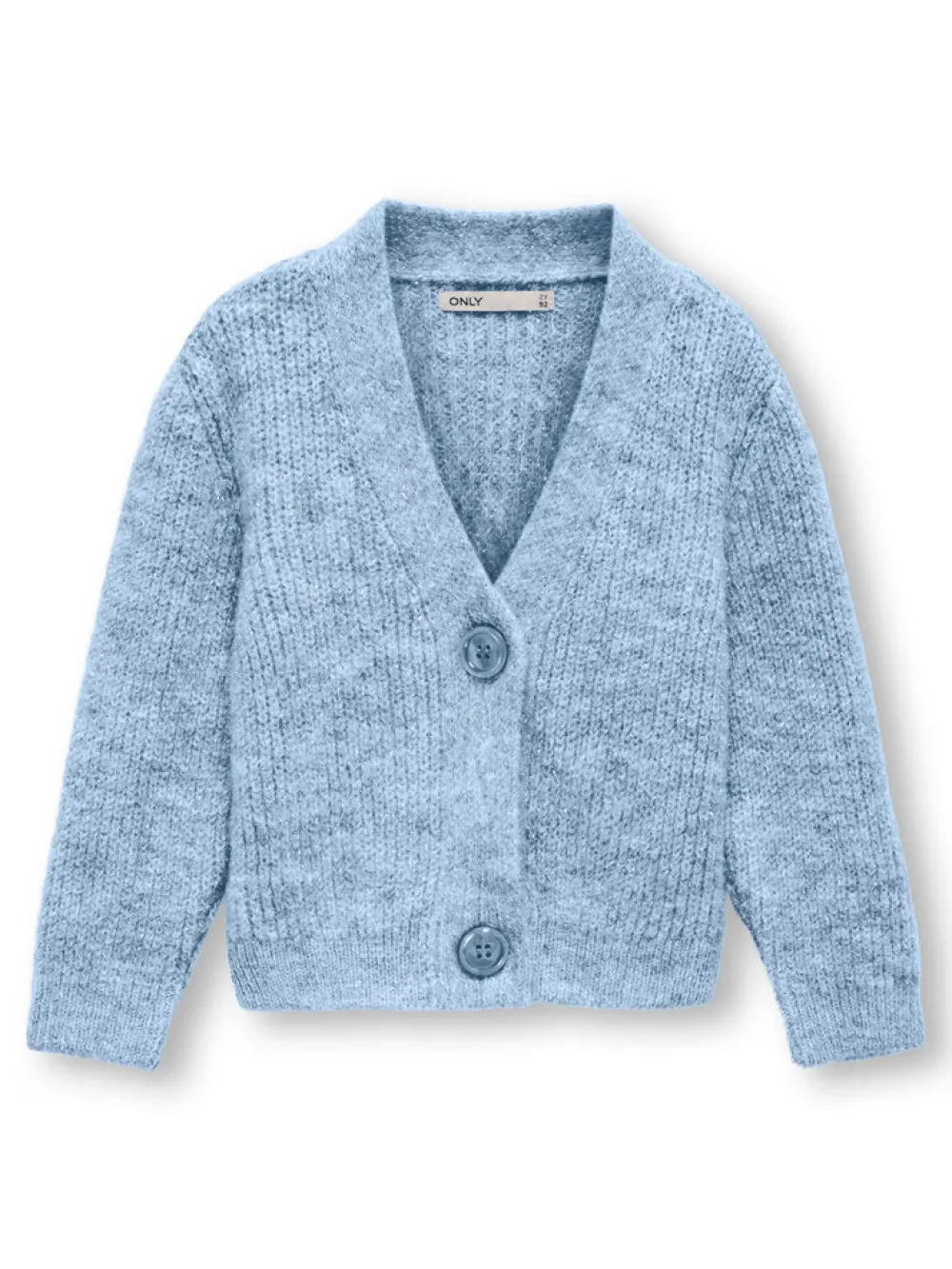 Fin cardigan med glimmer og to knapper.