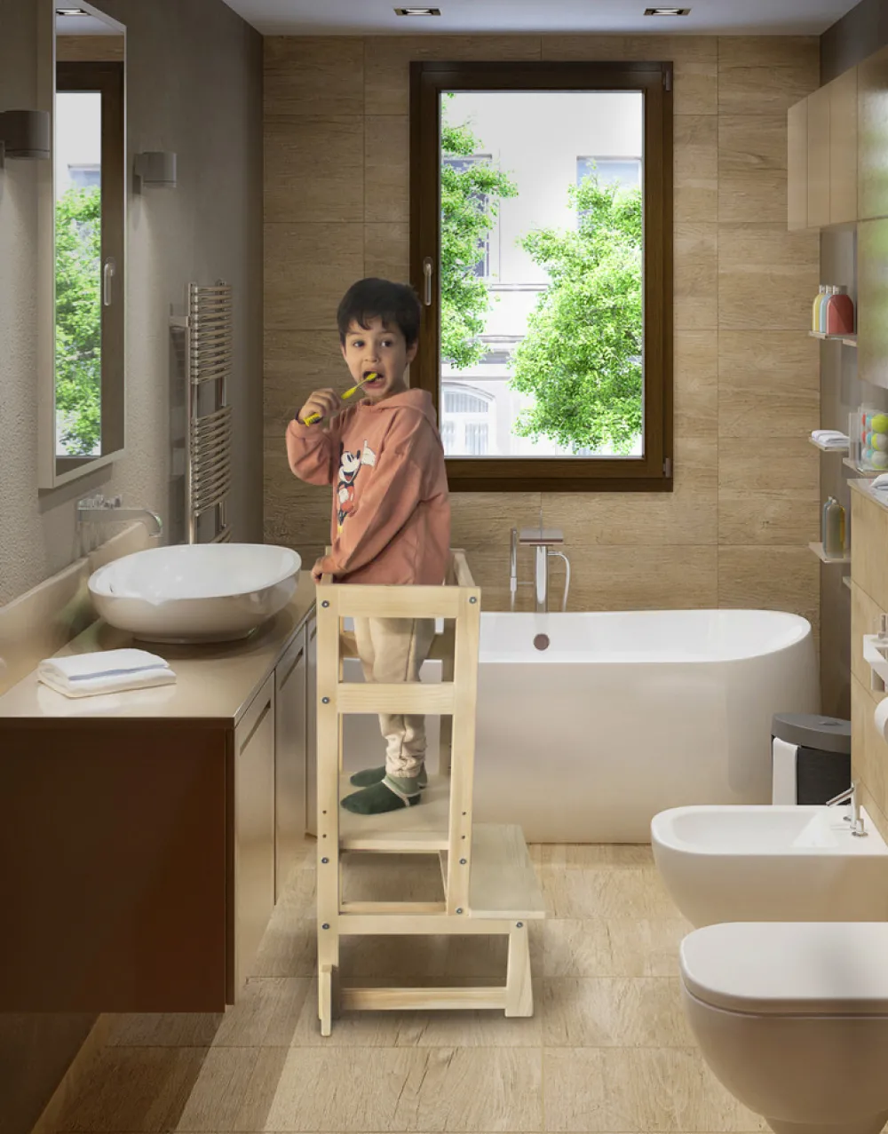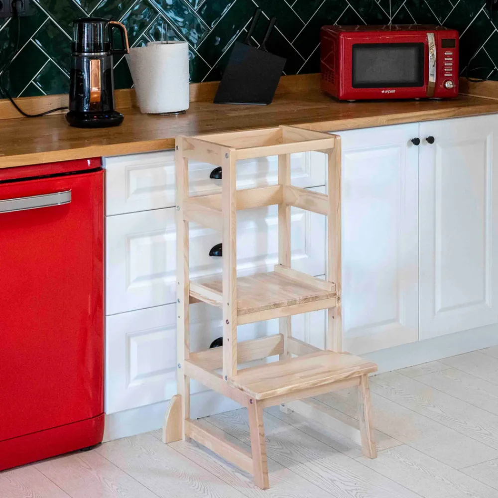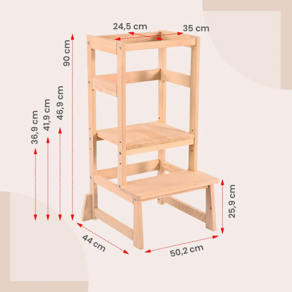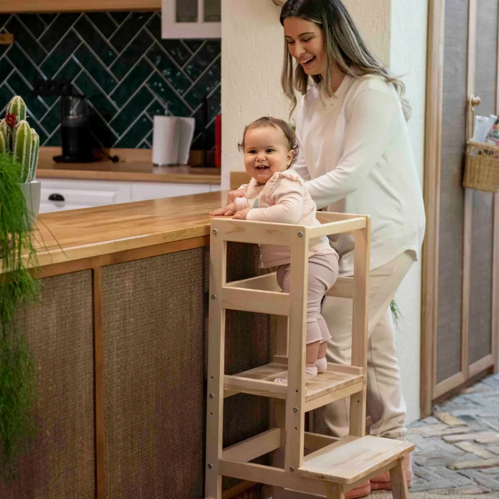 Vil du have dit barn til at lære og have det sjovt med dig i køkkenet? Så vil du elske Kukka Læringstårn. Kukka Læringstårnet er en vidunderlig ven for nysgerrige børn. Det støtter dit barn i at tilegne sig madlavningsfærdigheder, og gør dit køkken til et læringsområde ved at hæve dem til køkkenbordet. Kukka Læringstårnet er en pålidelig hjælper for børn til at udvikle selvstændige personlige plejefærdigheder. Det er med til at stille deres nysgerrighed. Med Læringstårnet kan dit barn vaske hænder, børste tænder, vaske frugt og grønt, og hjælpe dig med dine daglige gøremål. Det flugter perfekt med din køkkenbord eller vask i en ret vinkel. Dens stilfulde udseende og dimensioner gør, at den kan placeres næsten ethvert sted i dit hjem og bruges i mange år.