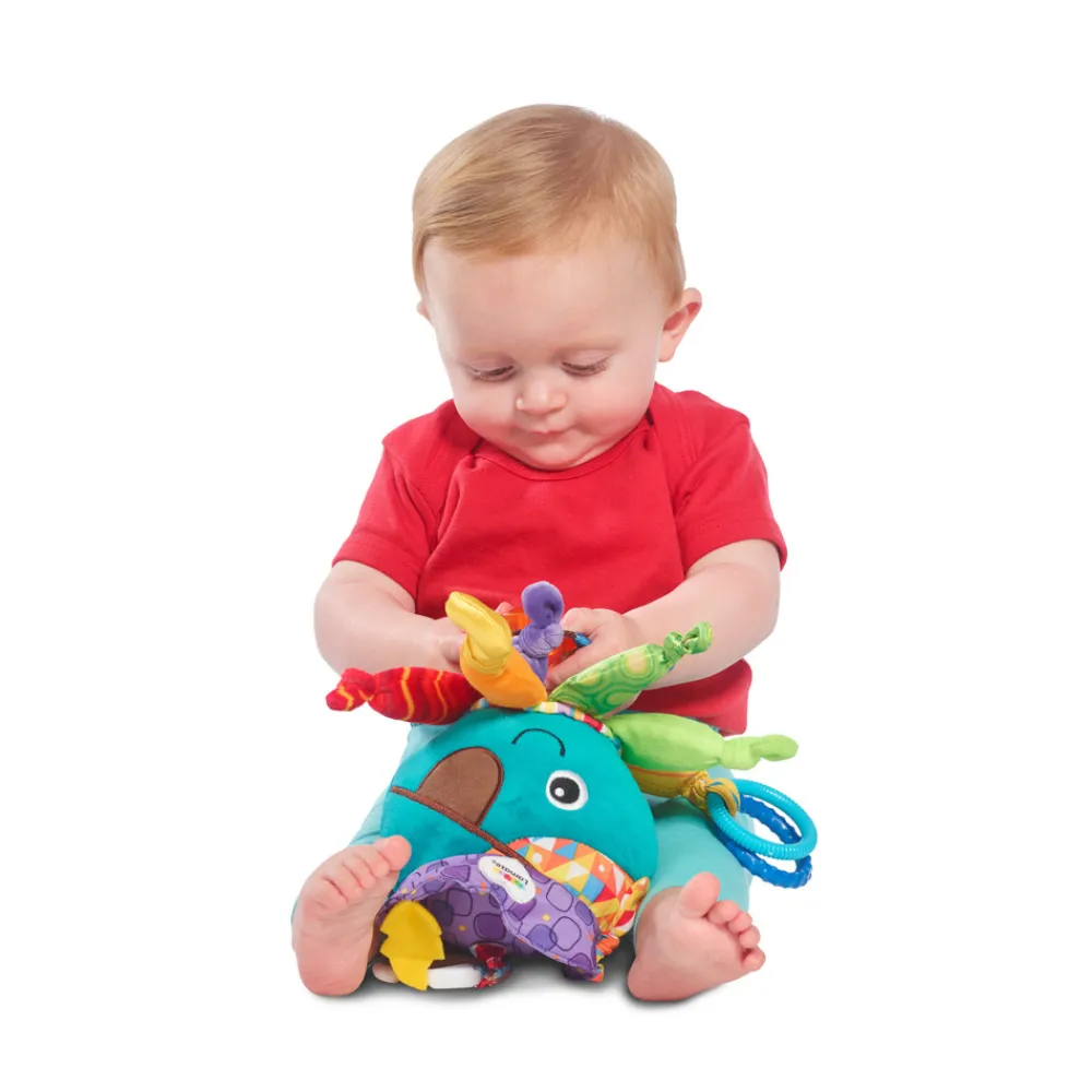 Mød babyens første sømand, Lamaze’s Sørøver rangle. Denne blæksprutte pirat har otte aktivitetsben, der er gode til udforskning. Kaptajnen har et skjult spejl, der hjælper med at lære selvgenkendelse og tilbyder sjovt titte-bøh spil. Babyen vil opdage sørøverens knitrende hat og sjove rangle, perfekt til at hjælpe med at udvikle finmotoriske færdigheder. Ranglen kan let monteres på seng, kravlegård eller lignende.