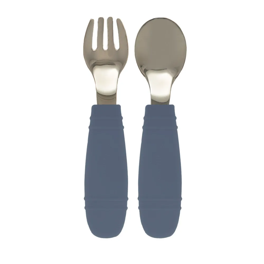 Lækkert og behageligt børnebestik produceret af rustfrit stål + 100% fødevaregodkendt silikone. Perfekt størrelse for de små, så bestikket ligger godt i hånden. I blød og behagelig silikone, samt sanseriller for bedre greb.