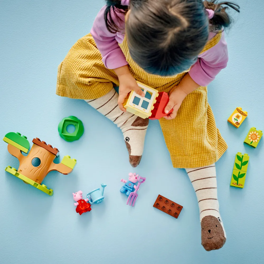 Inspirer små børn fra 2 år til at interessere sig for naturen med LEGO® DUPLO® sættet Gurli Gris’ have og trætophus (10431). Det sjove legetøj styrker de mindste piger og drenges kærlighed til naturen, når de leger rollelege om en dag i haven, hvor de hjælper Gurli og Gustav med at dyrke en solsikke. Bygge- og ombygningslegetøjet indeholder masser af kreativt legetøjstilbehør, der kan inspirere små Gurli Gris-fans, såsom en vandkande og høtyv. Tumlinger kan træne finmotorikken og deres evner til at matche og sortere ved at stable klodserne for at få legetøjsplanten til at gro. Bagefter kan de 2 figurer lege gemmeleg i træstammen eller slappe af i trætophuset. Dette LEGO DUPLO Gurli Gris læringslegetøj til børnehavebørn hjælper små børn med at udvikle en række færdigheder, lige fra problemløsning og vedholdenhed, når de dyrker planten, til at lære omsorg for naturen og selvudfoldelse, når de leger, at Gurli og Gustav deles om opgaverne og leger sammen i haven.