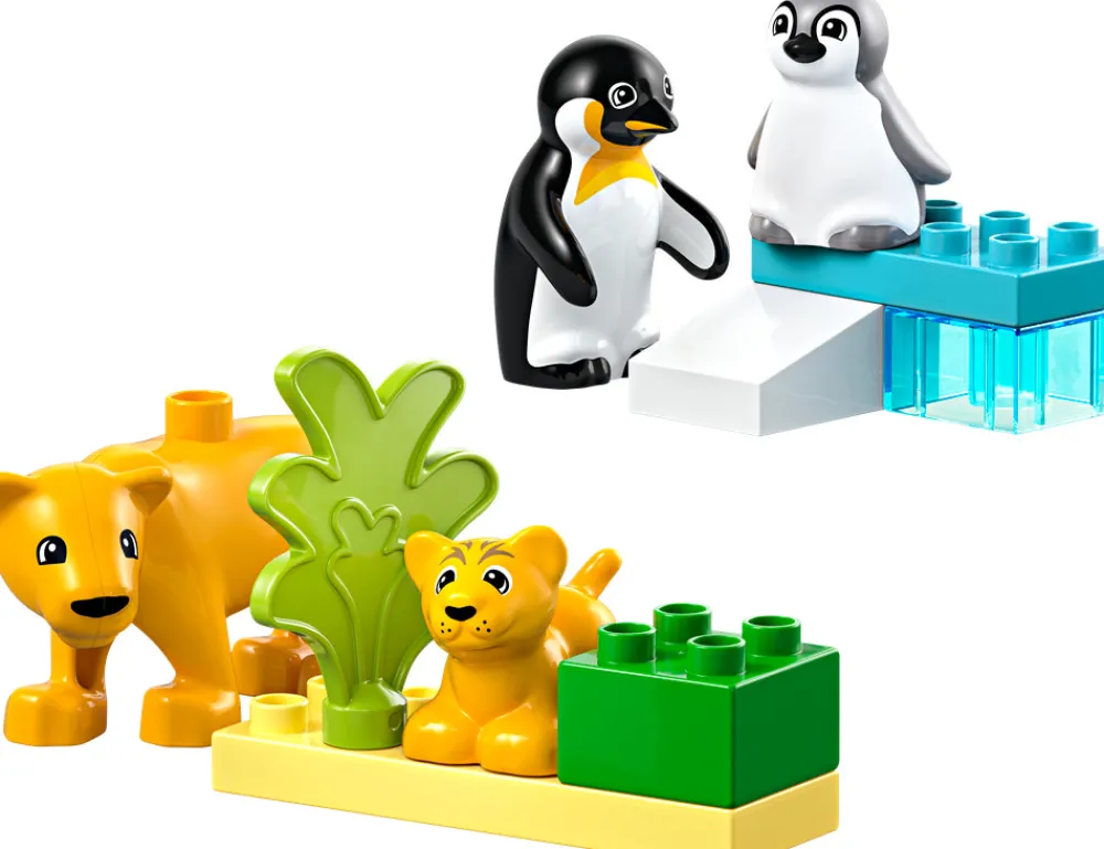 Tag små børn fra 2 år med på en spændende læringsrejse fra Antarktis til Afrika med det søde byggelegetøj Vilde dyrefamilier: pingviner og løver (10442). Dette naturtema-legetøj indeholder 2 LEGO® DUPLO® pingviner og 2 legetøjsløver, som inspirerer til timevis af kreativ leg. Hjælp dit barn med at lære forskellene mellem forældre og unger samt mellem varmt og koldt klima. Gennem rolleleg kan dit barn udtrykke sin omsorgsfulde side ved at lade de voksne legetøjsdyr passe deres unger. Vis dit barn, at forældre elsker at lege med deres børn, ligesom du gør. Byg en isrutsjebane til pingvinerne og græsområder til løverne sammen med dit barn for at styrke finmotorikken. LEGO DUPLO legetøj med dyretema er designet af eksperter til at støtte børns sociale og følelsesmæssige læring gennem sjove fortællinger, klare farver og forskellige legetøjsfigurer.