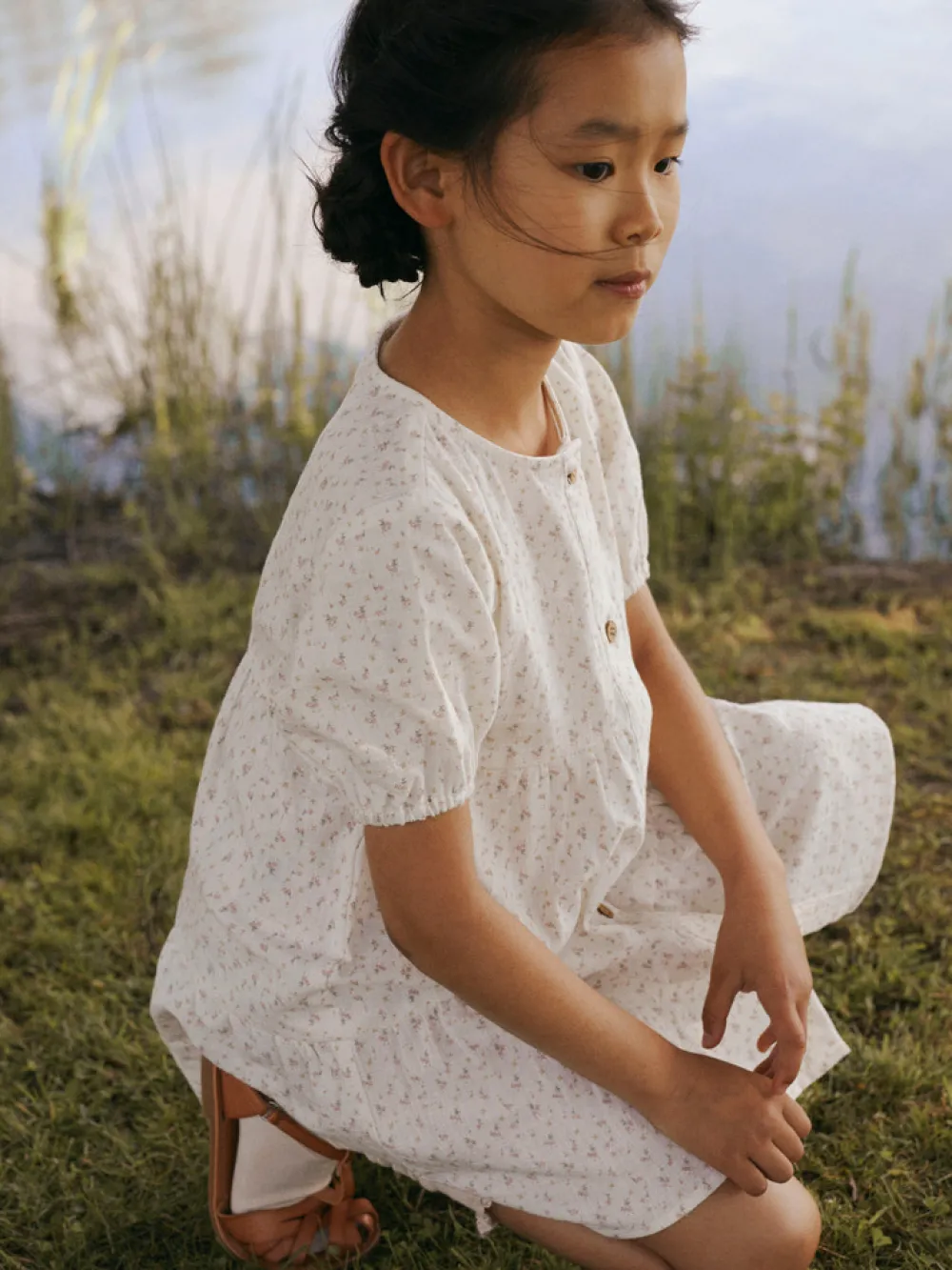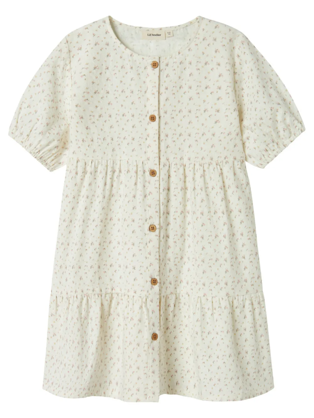 Forkæl din pige med et sødt og behageligt look med denne kjole, der har et charmerende print og korte ærmer. Ideel til både daglig brug og festlige lejligheder, og fremstillet af blødt, komfortabelt materiale, der sikrer optimal komfort hele dagen.