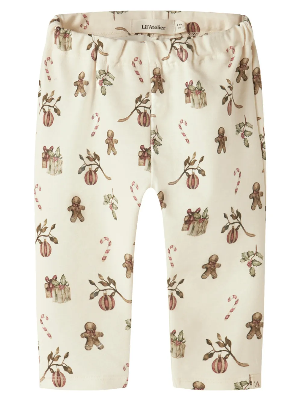 Layo Gan Bukser fra Lil’ Atelier i farven Turtledove er et skønt valg til de mindste, når der skal hygges og leges. Bukserne har et charmerende print med små julemotiver som peberkagemænd, gaver og slikstokke, der skaber en hyggelig stemning. Den bløde kvalitet sikrer, at barnet kan bevæge sig frit, og den elastiske talje gør dem nemme at tage af og på. Bukserne er perfekte til både hverdagsbrug og særlige lejligheder, hvor komfort og sødt design går hånd i hånd. De kan nemt kombineres med en enkel bluse eller body for et fuldendt look.