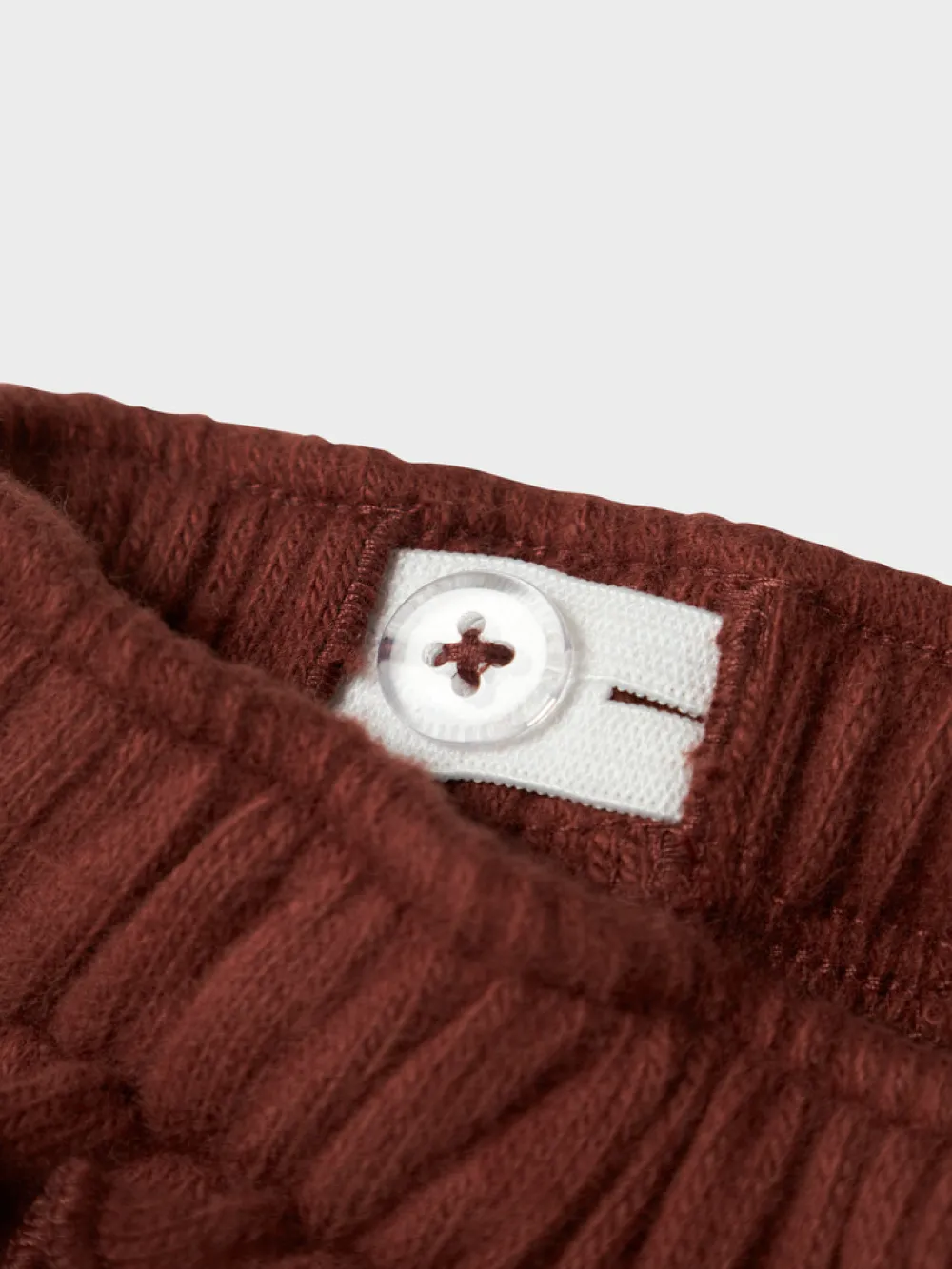 Sæt det perfekte outfit sammen til dit barn med kvalitetsstilarter til hverdagsbrug, og skab et behageligt og trendy look.Jersey er et let og elastisk stof med en blød overflade og inderside, der giver en behagelig fornemmelse og bevægelsesfrihed. – Produkttype: Bukser – Ekstra detaljer: Justerbar talje, mærke, flæser – Pasform: Løse bukser har en tætsiddende overdel og løse ben – Advarsel: ADVARSEL! Holdes væk fra ild – Fastgørelsestype: Fast snor