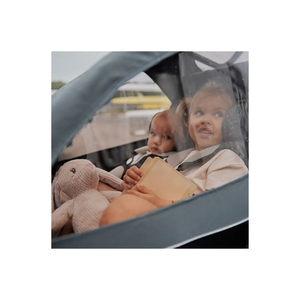 Velegnet til børn fra 6 måneder op til 6 årkombinerer funktionerne i en cykeltrailer og klapvognHar plads til et eller to børnSamlet lastkapacitet – 44 kg (22kg pr. barn) Bæreevne: 64kg Smart SIQ-affjerdring: designet til at udligne kræfter, der opstår når man navigerer i alle slags udfordrende terræn. Funktionen garanterer at selv i ujævnt terræn nyder barnet en jævnere tur uden stød. Allround-sikkerhedssystem: har en banebrydende kapselstruktur, der er designet til at danne et beskyttende “bur”, der beskytter barnet mod stød fra alle retninger. Head+ er et ryglæn der er designet specielt til at lade dit barn hvile hovedet komfortabelt og sikkert, uanset om det tager en lur eller slapper af. Vinduerne og frontdækslet er lavet af tonet film for at reducere varmeopbygning på de varmere dage. Vognens polstring af en vandagvisende belægning for at afværge fugt og et ekstra UPF 50+ filter for ekstra beskyttelse mod solen. Dri-seat stof for at forhindre dit barn i at svedeForstærket gulv gør det nemt for børn at komme ind og ud af vognen. Store oppustelige hjul, der er dygtige til at håndtere ethvert terrænForhjulet er lavet af EVA skum