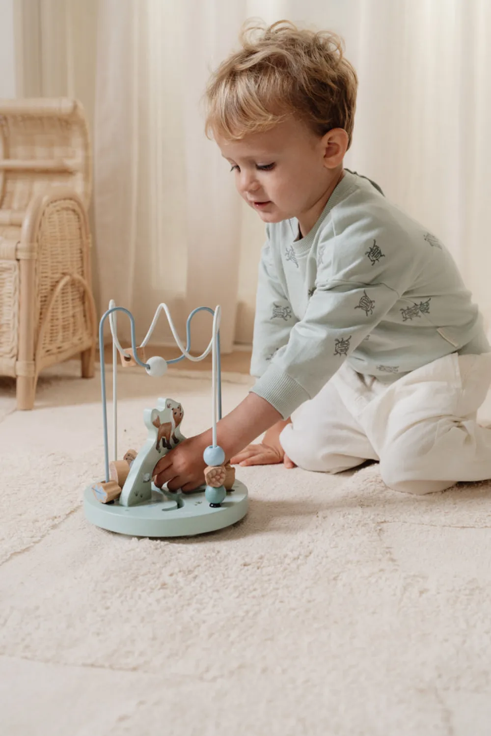 Før perlerne fra den ene side til den anden på denne aktivitets spiral fra Forest Friends’ fortryllede verden. Undervejs mødes en ræv, pindsvin, billen og den lille snegl. Denne aktivitetsspiral i træ giver en lærerig og fortryllende oplevelse for dit barn.