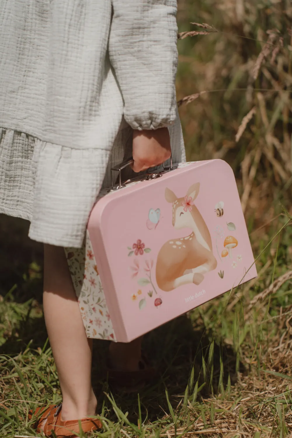 Tag på eventyr med Little Dutch kuffertsæt til børn! Sættet består af to legekufferter i Fairy Garden-designet med søde illustrationer af en hjort. Indersiden er trykt med et smukt print. Begge kufferter har et klassisk metalhåndtag og en lås, perfekt til små opdagelsesrejsende.