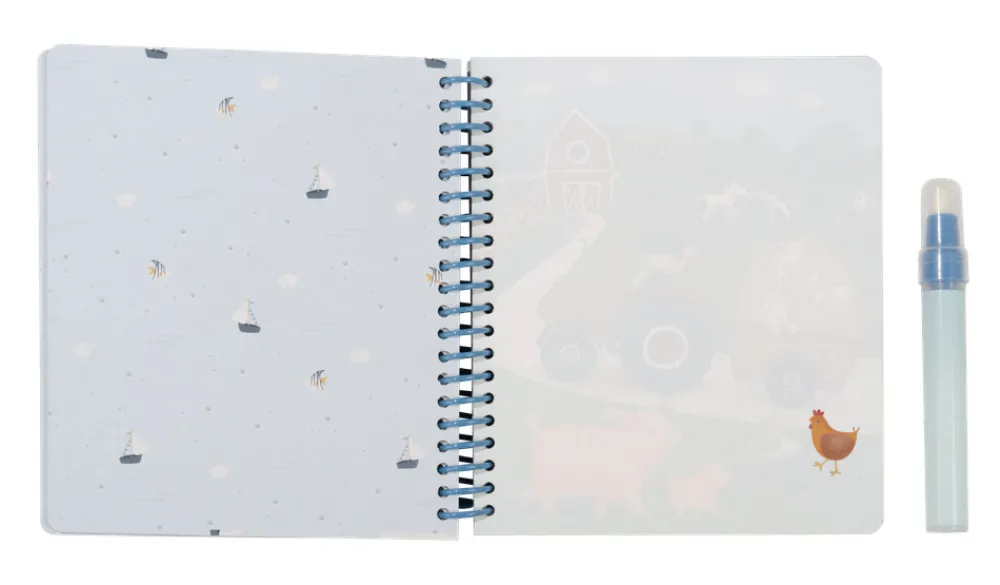 Det her ligner magi! Med Little Dutch Jim & Friends malebogen kan du lave de smukkeste tegninger af Jim og hans venners forskellige aktiviteter. På hver side er et stykke allerede farvelagt så du kan se antydning af tegningen, der er gemt der. Fyld den medfølgende specialtusch med vand og begynd at tegne. Når der kommer vand på siden, dukker de smukkeste fineste tegninger op. Når siden tørrer, kan du lave tegningen igen og igen. Bogen har en praktisk spiralryg, er lavet af robust pap og med de søde Little Dutch designs og farver. Bogen er perfekt både derhjemme og til at have med!