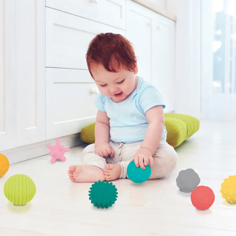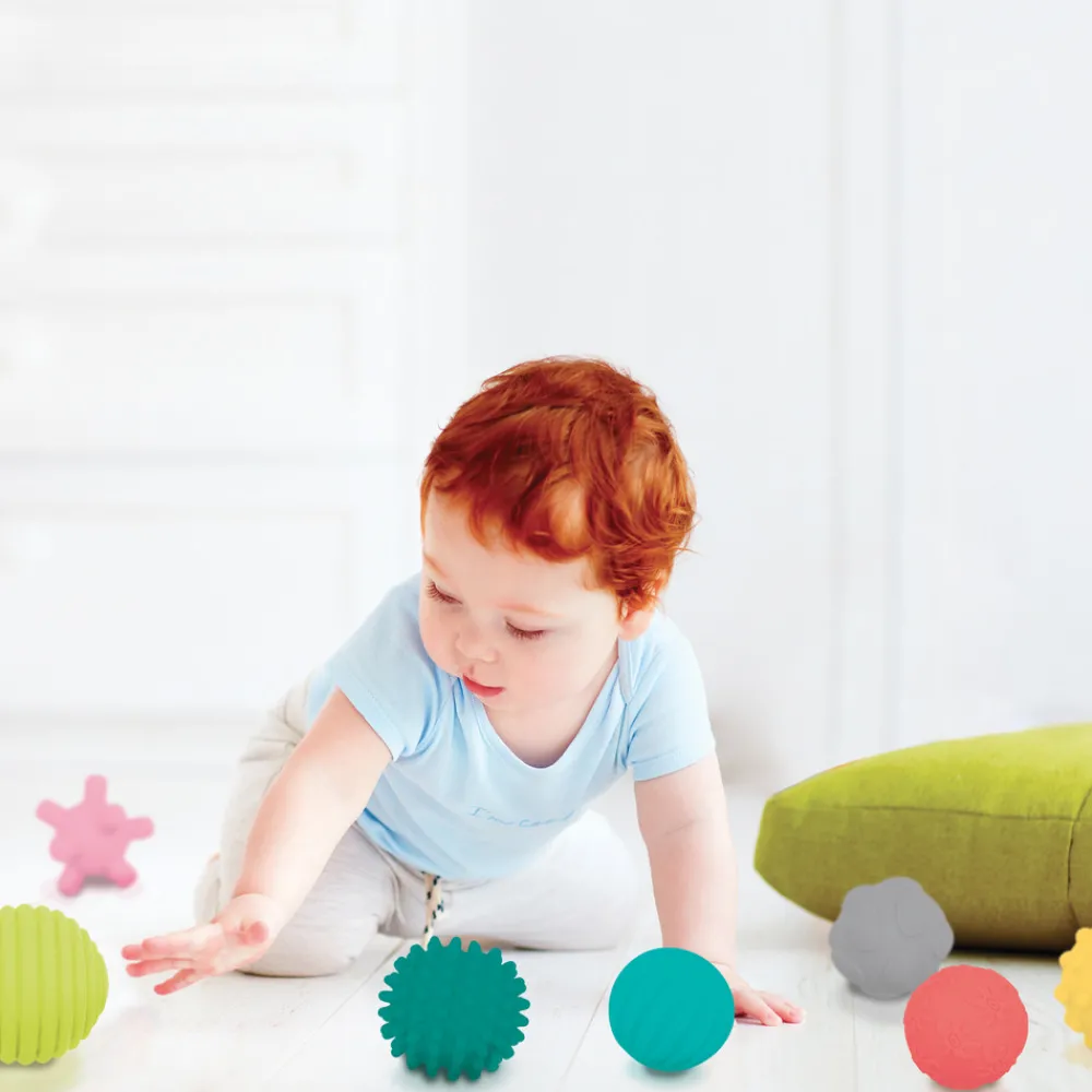 Det specielle ved disse bolde er, at de alle har forskellige overflader og giver barnet forskellige sanseoplevelser. De stimulerer barnets sanser og er sjove at udforske og lege med. De kommer i en gennemsigtig krukke, hvor de kan opbevares efter brug eller hvis man vil have dem med på eks. ferie.