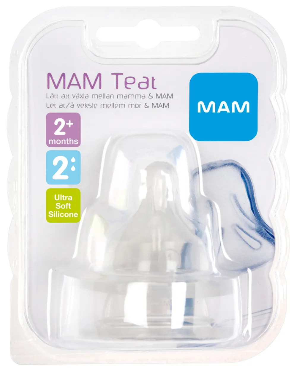 Denne flaskesut i silikone, hvis overflade minder om morens hud, gør det nemmere at veksle mellem amning og flaske. Flaskesutten her er designet til brystmælk, modermælkserstatning og vand. MAM silk teat, er blødere end almindelig silikone og har en fløjlsblød overflade, der giver dit barn en tryg og giver barnet en let fornemmelse. Silikone er det mest allergivenlige materiale på markedet, og som alle MAM’s øvrige produkter er denne flaskesut uden skadelige tilsætningsstoffer. Silikone er et meget rengøringsvenligt og varmebestandigt materiale, som ikke tager skade af gentagen sterilisering. Passer til alle MAM flasker.