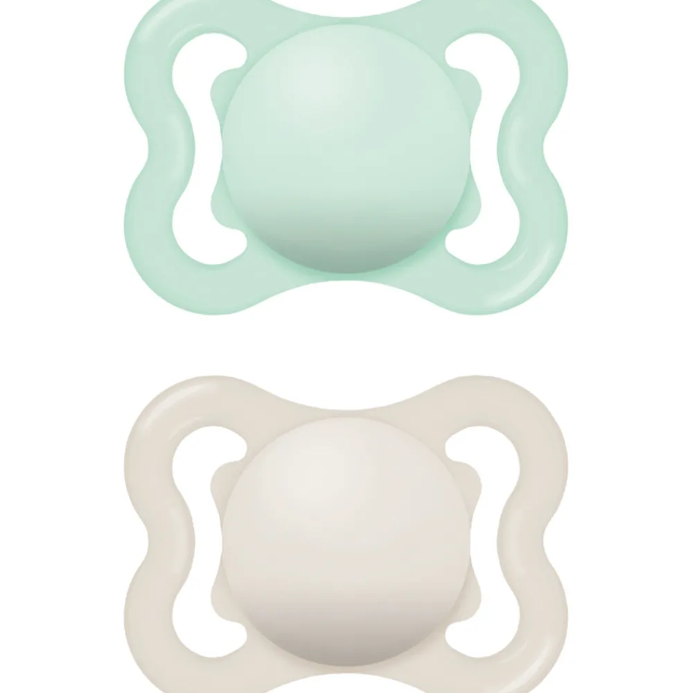 MAM Air har en flad, symmetrisk sut og ekstra store lufthuller, så barnets følsomme hud kan ånde. Det specielle design gør også, at forældrene kan se barnets smil, selv når sutten er i brug. Sugedelen er lavet af silkeblød silikone, MAMSkinSoftTM-silikone som føles blød og velkendt, ligesom mors hud, og som accepteres af 94% af alle babyer*. Sutterne leveres i en praktisk opbevarings- og steriliseringsæske, der gør det nemt at sterilisere sutterne i mikrobølgeovnen.