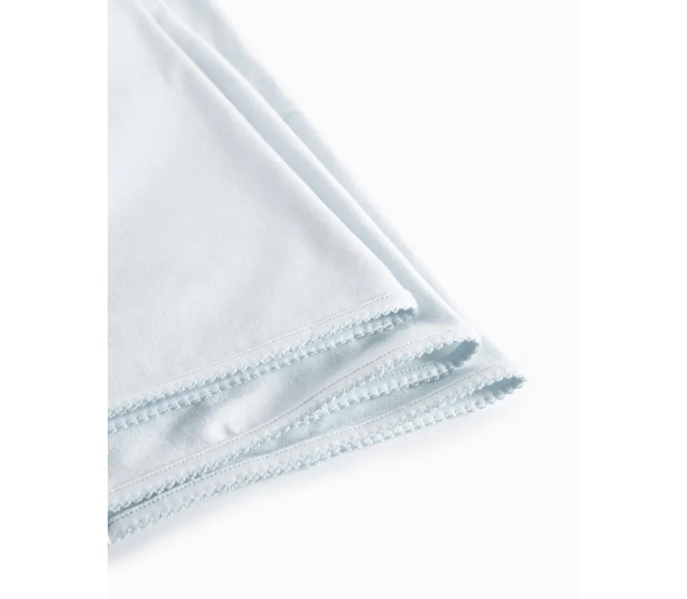 Dette kvadratiske babytæppe med afrundede hjørner måler 80 x 80 cm og er ideelt til både svøb, puttetid og hygge. Det er fremstillet i blød jersey med elastan og strikket i melangegarn, hvilket gør det både strækbart og behageligt mod barnets hud. Tæppet holder form og farve – selv efter mange vaske.