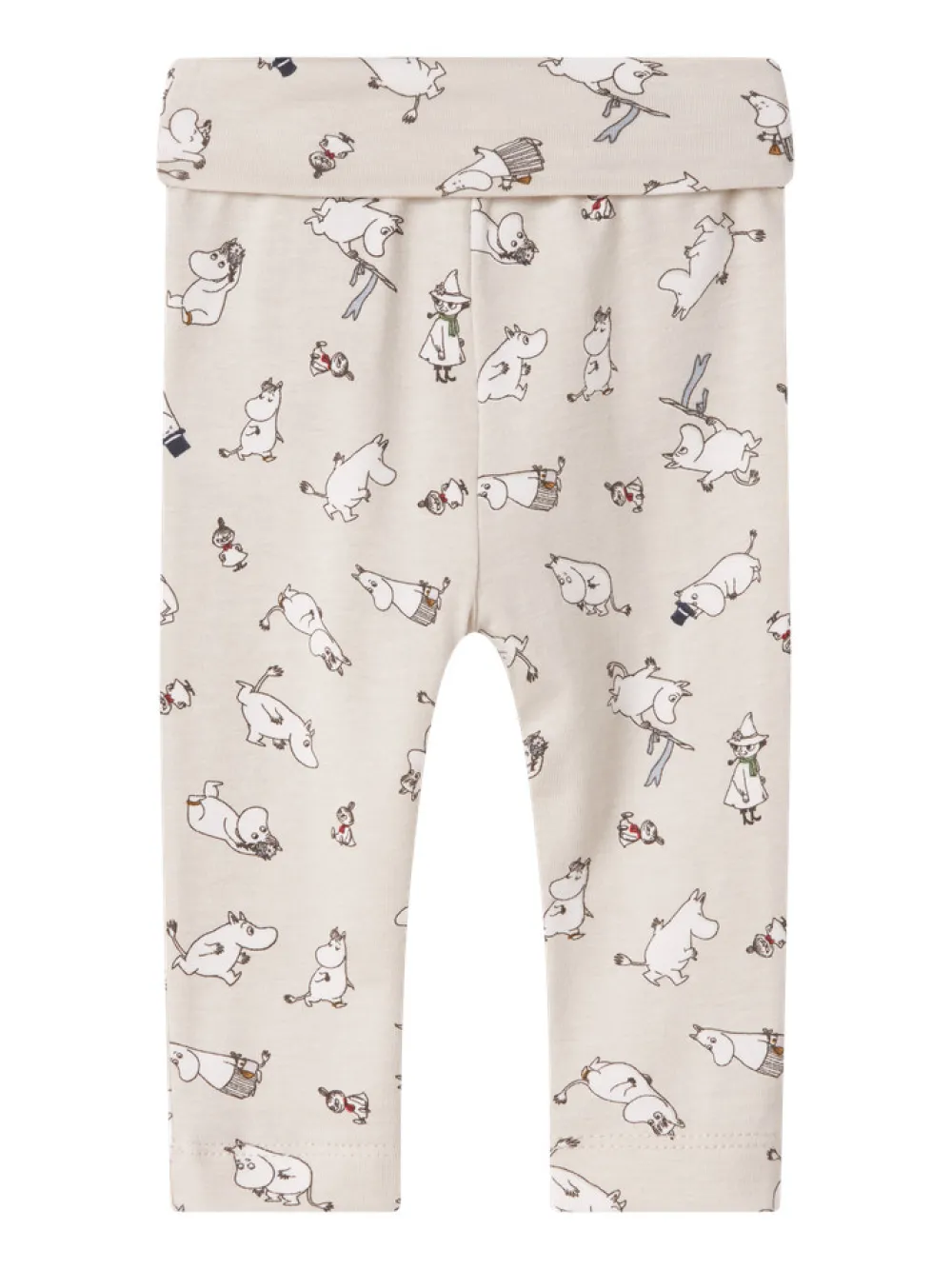 Behagelige bukser til de nyfødte med et sødt Moomin print. Bukserne er både bløde, strækbare og behagelige at have på.