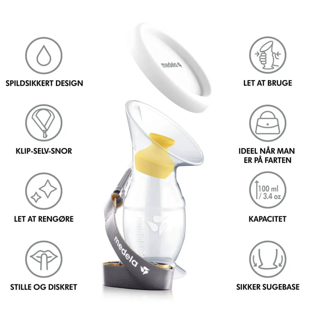 Denne Medela brystmælksopsamler i silikone er en amme ledsager og sparer på brystmælken. Med sit dobbelte, lækagesikre design, strop og sugekop beskytter Medelas brystmælksopsamler i silikone hver eneste dyrebare dråbe mælk mod at gå tabt for at sikre, at dit barn får det hele! Den er nem at bruge – Du skal blot fastgøre brystmælksopsamler, der også er kendt blandt andre mærker som en silikonebrystpumpe, på det ene bryst, mens du ammer fra det andet, så du fanger din naturlige nedløbsrefleks. Ikke en brystpumpe – en opsamler til brystmælk, mælkeskåner eller silikonebrystpumpe genererer ikke nogen sugecyklusser til aktivt at fjerne mælk fra brystet på en effektiv måde. Medbring Medelas brystmælksopsamler i silikone, der er let og bærbar, uanset hvor du er, som din ledsager under amningen! Brystmælksopsamler letvægtsstørrelse i ét stykke gør det nemt at pakke den i tasken, når du er på farten.