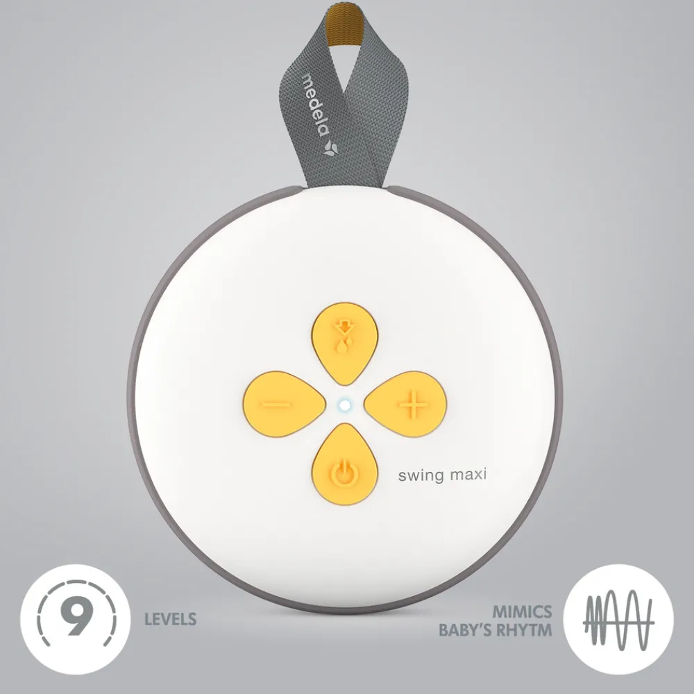 Swing Maxi™ har ni forprogrammerede indstillinger, du kan vælge imellem og styre med de fire brugervenlige knapper. Den elektriske dobbeltbrystpumpe Swing Maxi™ består af færre dele, hvilket gør samling og rengøring til en barneleg.