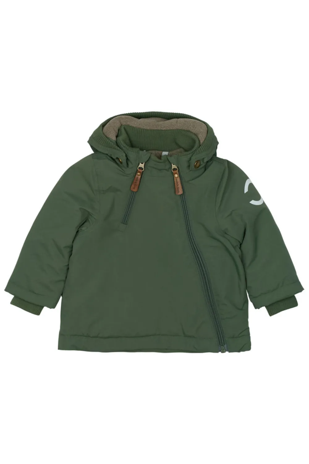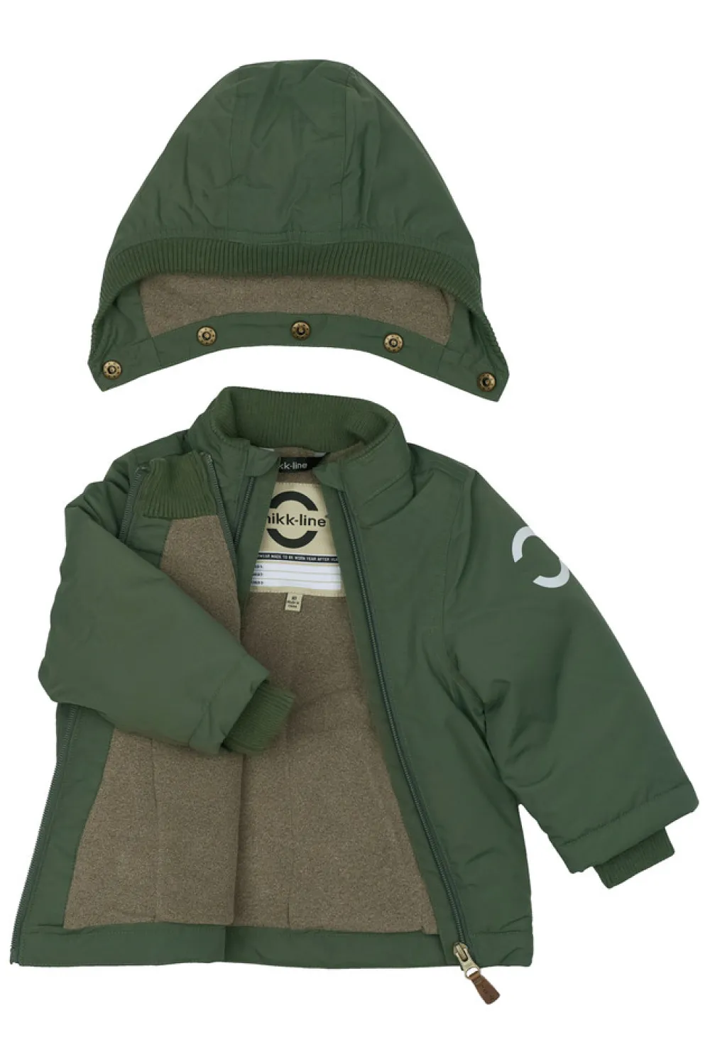 Ensfarvet Mikk-line baby vinterjakke til børn, der elsker leg og eventyr i naturen og under åben himmel. Det er en holdbar nylon vinterjakke af høj kvalitet og enkelt design, der holder barnet varmt og komfortabelt i det kolde efterårs- og vintervejr med vind, regn og sne.