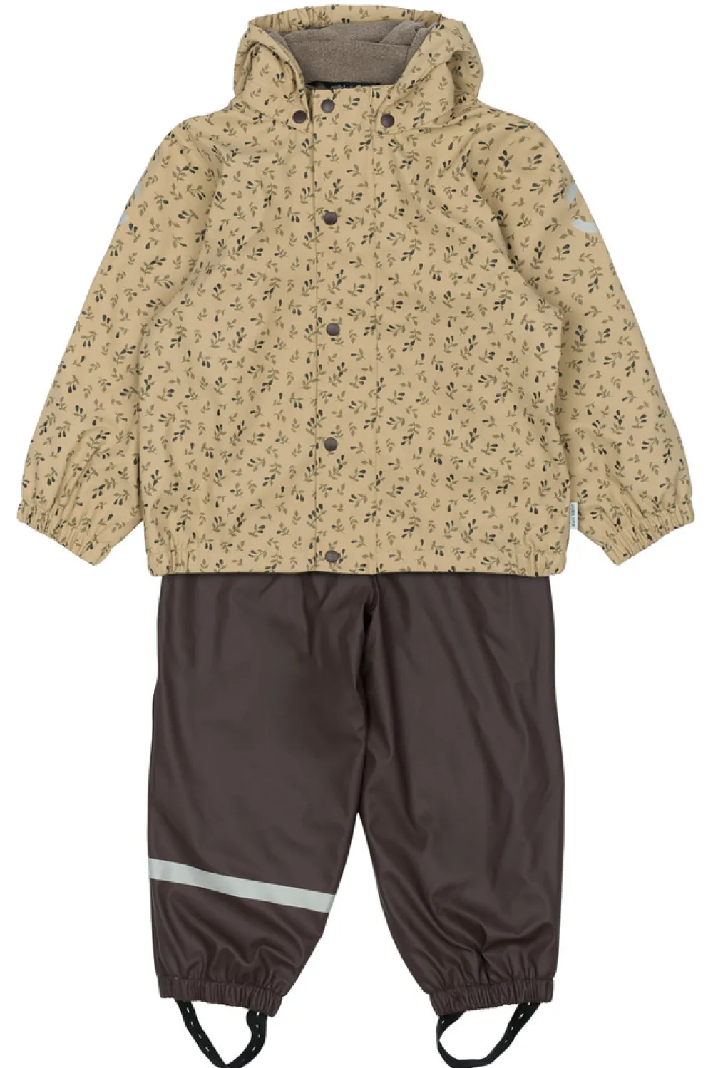 Varmt PU regntøj fra mikk-line, der er skabt til at børn kan trodse regnen og have det sjovt med at hoppe i vandpytter, glide ned ad den våde rutsjebane, lege i den våde sandkasse osv. Sættet består af en vandtæt regnjakke og regnbukser, der begge er lavet af genanvendt og blødt PU-materiale.