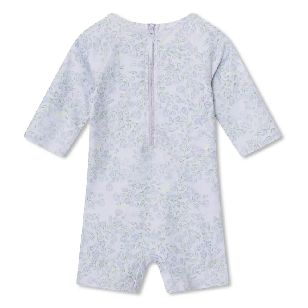MINI A TURE heldragt til de små med håndtegnet print inspireret af naturen. Dragten har en lang lynlås bag på, hvilket gør den nem at tage af og på. Heldragten er fremstillet af genanvendt polyester.
