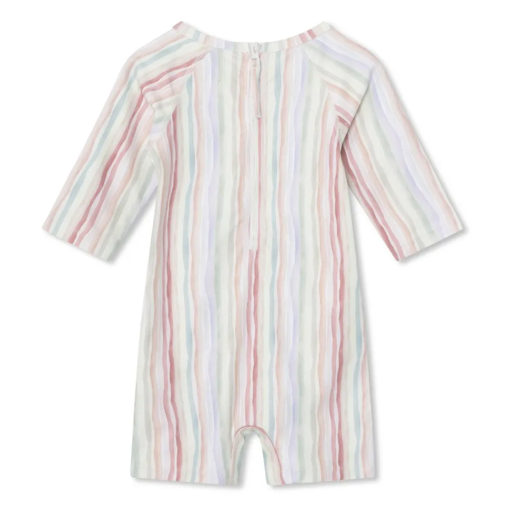 MINI A TURE heldragt til de små med håndtegnet print inspireret af naturen. Dragten har en lang lynlås bag på, hvilket gør den nem at tage af og på. Heldragten er fremstillet af genanvendt polyester.