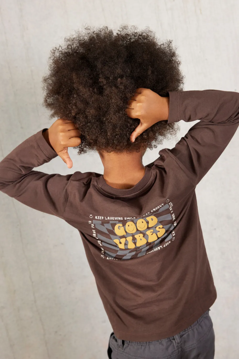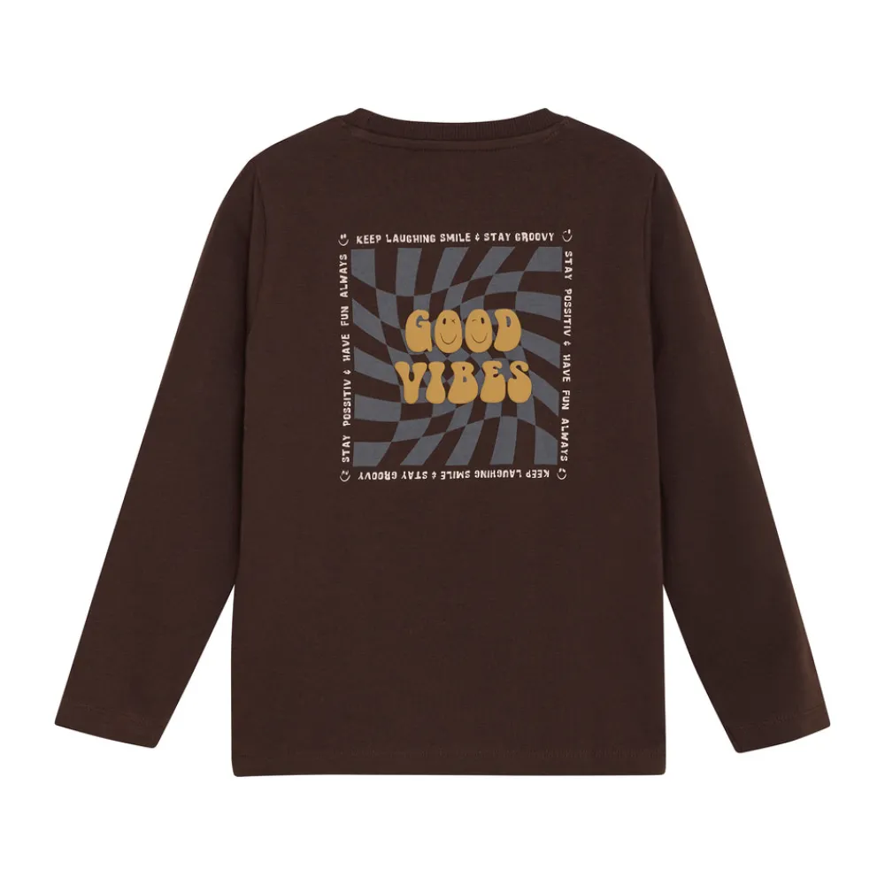 Langærmet T-shirt med et iøjnefaldende print på ryggen, rund halsudskæring og en tidssvarende pasform – perfekt til et afslappet og stilfuldt look.