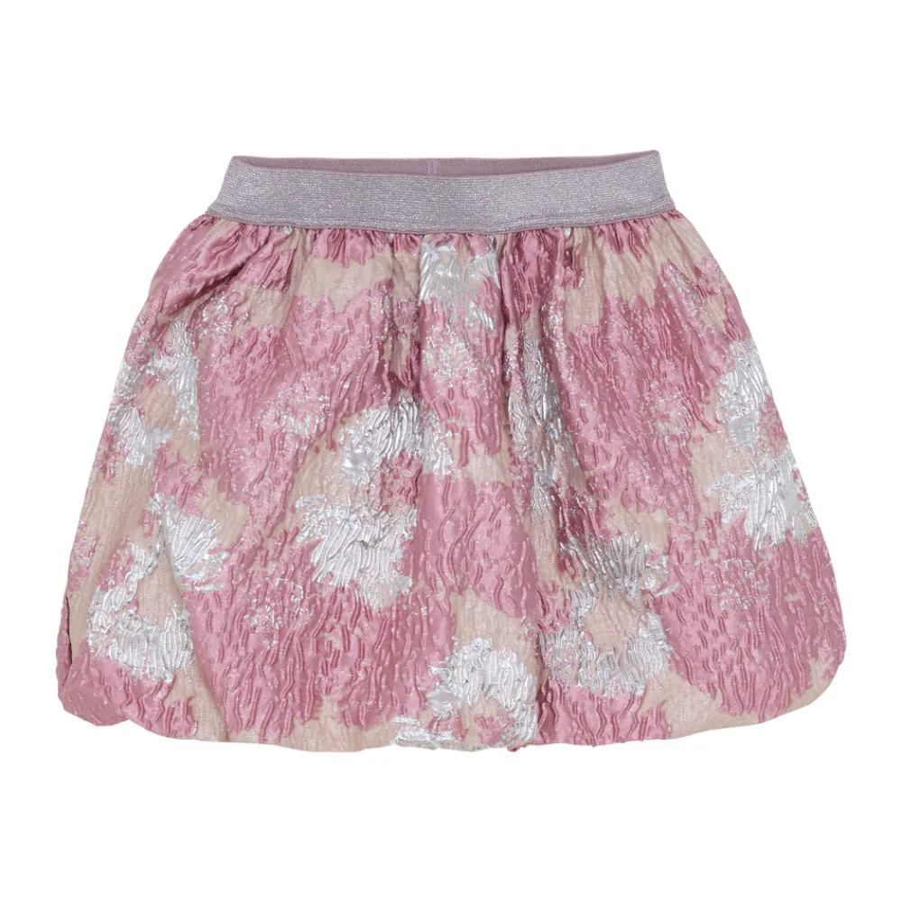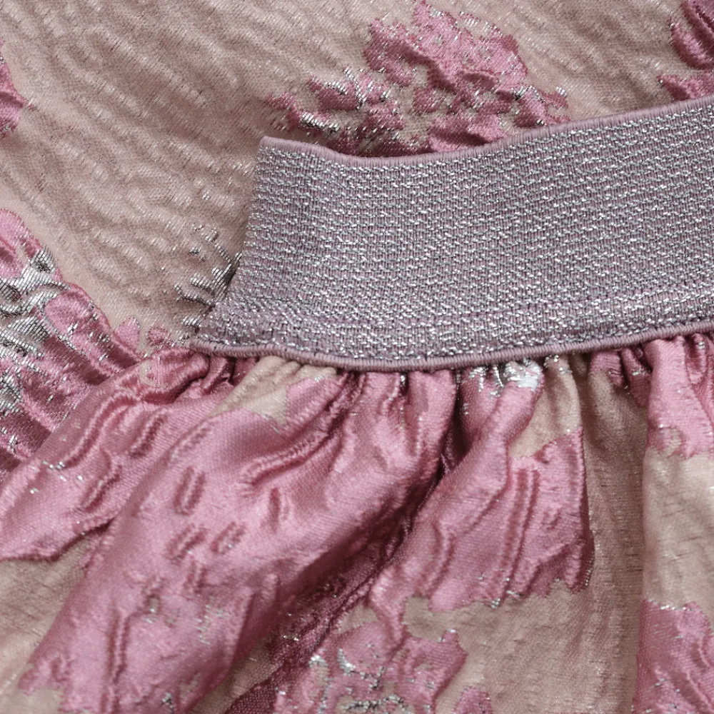 Kort skørt med en elegant, skinnende finish og et blødt, elastisk taljebånd, der sikrer en behagelig og fleksibel pasform.