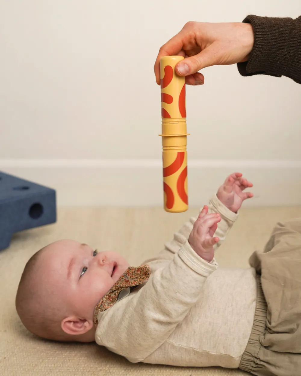 MODU baby motoriksæt — 12 sjove øvelser til de første 12 måneder af livet. Produktet er designet af eksperter i babyudvikling og indeholder en omfattende guide med billeder og vejledninger, der følger din babys vigtige motoriske milepæle; fra mavetid til kravl og videre. I pakken modtager du også specielt designet raslepinde med unikke lyde og mønstre, som giver både visuel og sanselig stimulans. Velkommen til et år fyldt med sjov, leg og udvikling!