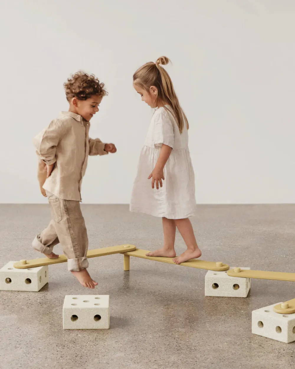 Byg. Balancér. Med dette sæt af bomme og klodser kan børn designe deres egne balancebaner og udfordre deres koordination og motorik med mindst 10 forskellige baner på forskellige niveauer — og flere at udforske! Balancebommene er lavet af birketræ og bejdset med naturlige linolier, hvilket giver et holdbart design, der passer ind i ethvert hjem. Med utallige måder at bygge på er dette sæt perfekt til at fremme fantasifuld leg og aktiv læring, og når balancebanen ikke er i brug, kan den bygges om til smarte møbler, som en hylde, en bænk eller endda et lille bord — et sjovt og funktionelt legetøj til børn fra 3 år og op!