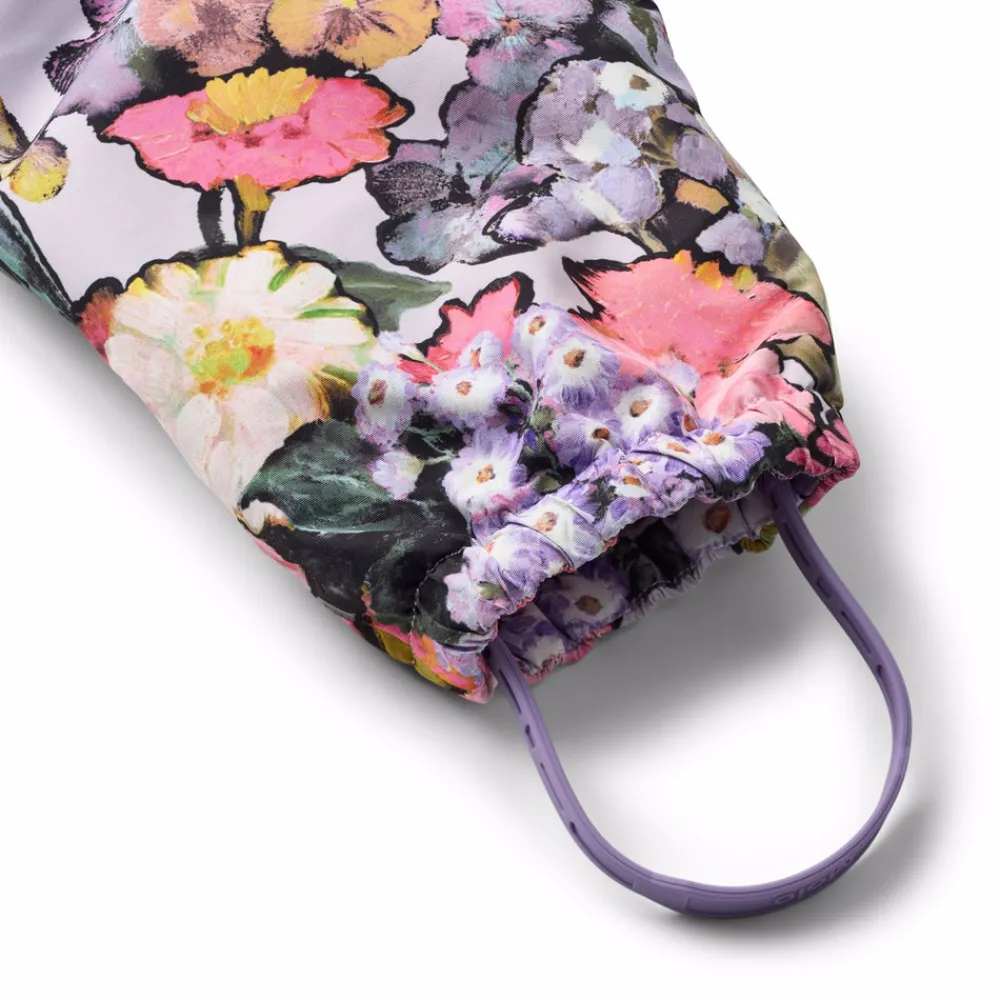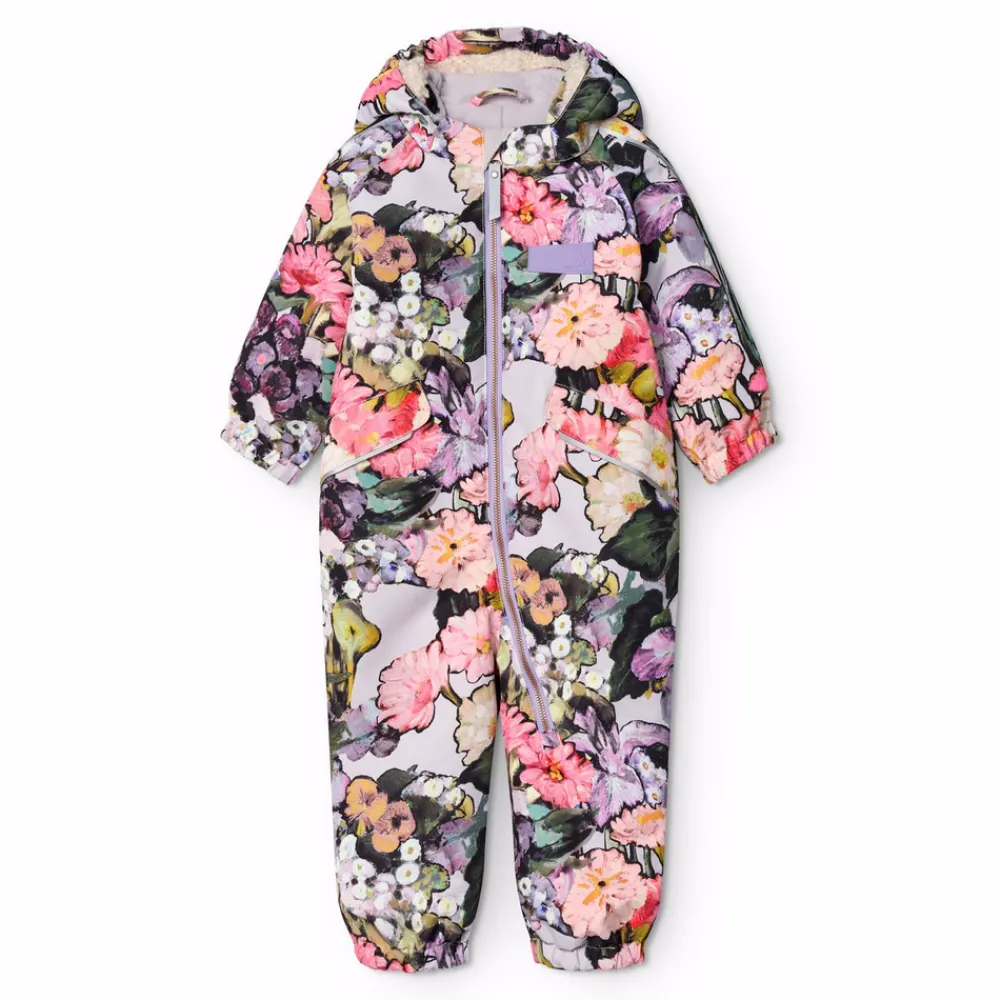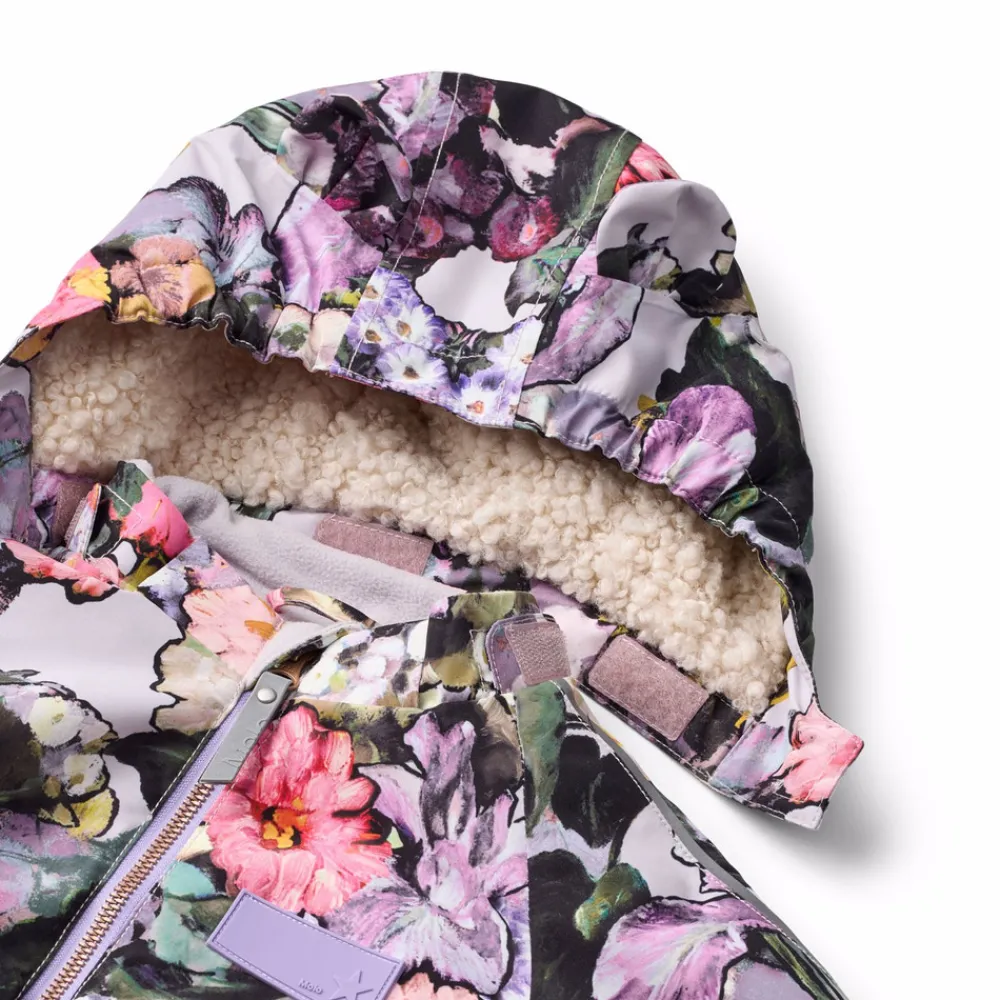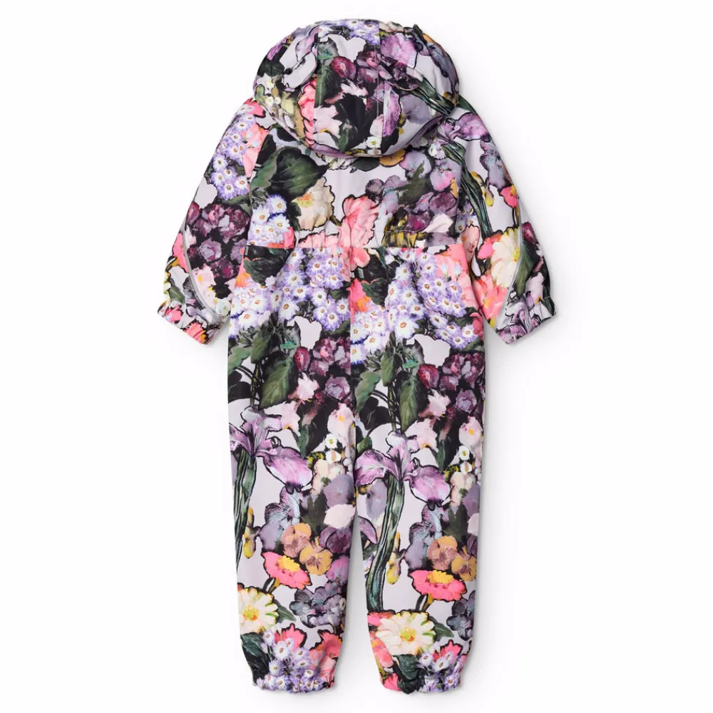 Vandafvisende flyverdragt til de mindste, fremstillet i genanvendt nylon. Dragten har en aftagelig, foret hætte og en ekstra lang lynlås på fronten, der gør den nem at tage på og af. Elastikken i lænden samt ved ærme- og ben afslutninger sørger for, at sne, regn og vind holdes ude, samtidig med at luffer og støvler bliver på plads. Flyverdragten er udstyret med refleksbånd på lommerne og ærmerne, som sikrer ekstra synlighed i trafikken. Derudover har dragten fleecefor ved numse og ryg samt en indvendig justerbar elastik i taljen, der giver en tæt og behagelig pasform omkring kroppen.