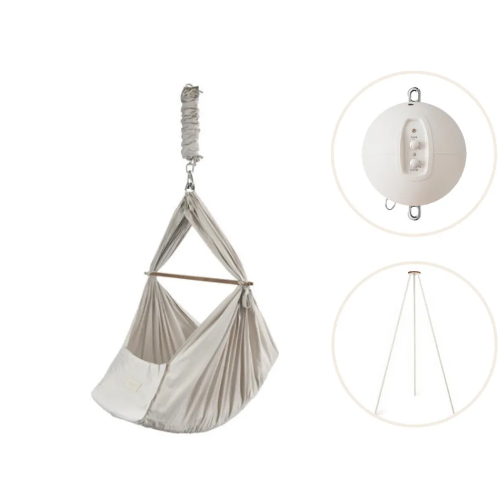 Stativ: Stilfuldt, sikkert og enkelt – med et Moonboon stativ kan du fastgøre din vugge eller slyngevugge, hvor du vil, så du altid kan holde øje med din sovende baby. Dette specialdesignede stativ er fremstillet i overensstemmelse med de strengeste europæiske sikkerhedsstandarder, så du kan være sikker på, at dit barn sover trygt og godt, så længe det har brug for det. Med tre ben i slanke, runde profiler er stativet let at samle og pakke væk, når det ikke er i brug, hvilket gør det både alsidigt og bærbart. Stativet er 194 cm højt og kan holde en vugge eller slyngevugge samt en vuggemotor.