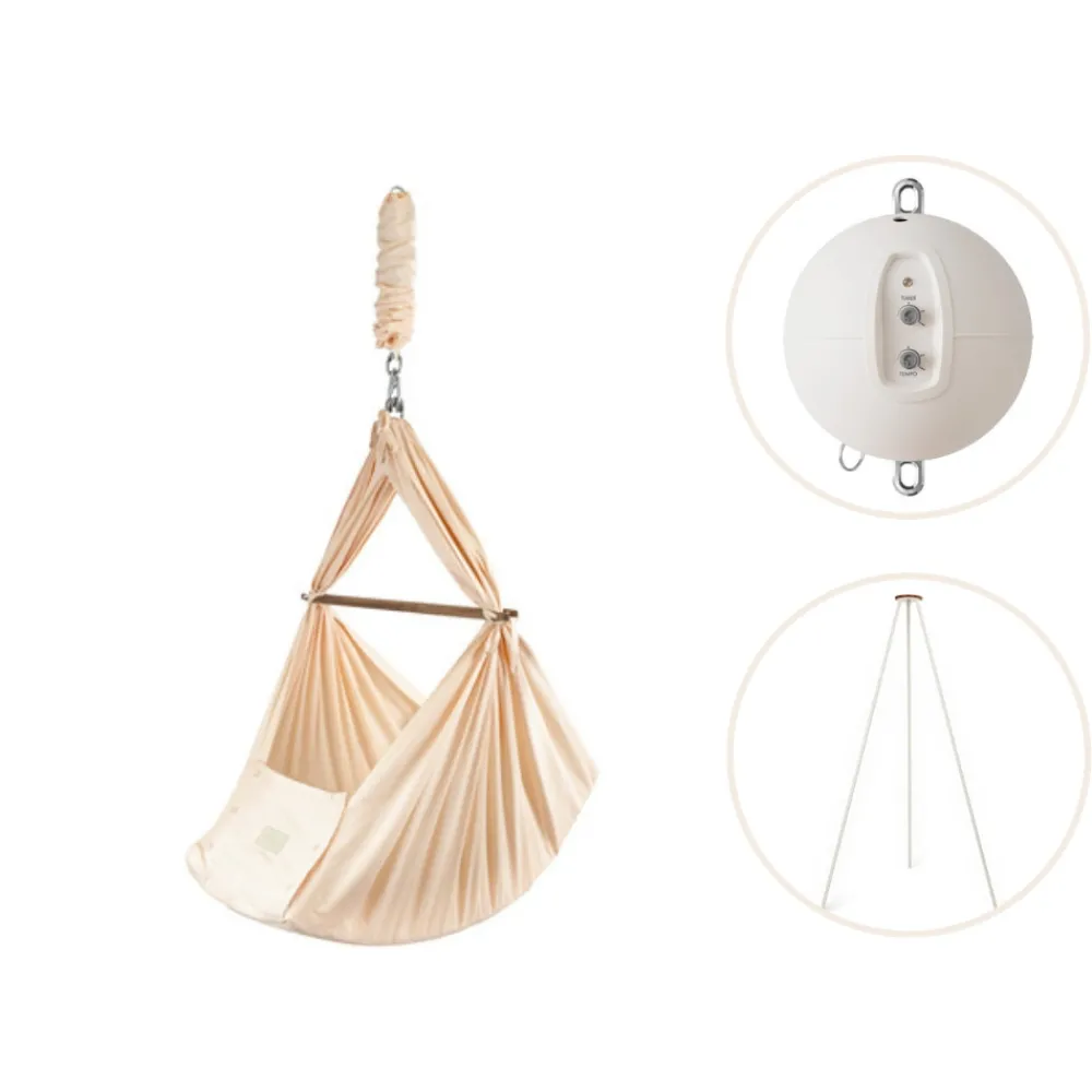 Stativ: Stilfuldt, sikkert og enkelt – med et Moonboon stativ kan du fastgøre din vugge eller slyngevugge, hvor du vil, så du altid kan holde øje med din sovende baby. Dette specialdesignede stativ er fremstillet i overensstemmelse med de strengeste europæiske sikkerhedsstandarder, så du kan være sikker på, at dit barn sover trygt og godt, så længe det har brug for det. Med tre ben i slanke, runde profiler er stativet let at samle og pakke væk, når det ikke er i brug, hvilket gør det både alsidigt og bærbart. Stativet er 194 cm højt og kan holde en vugge eller slyngevugge samt en vuggemotor.