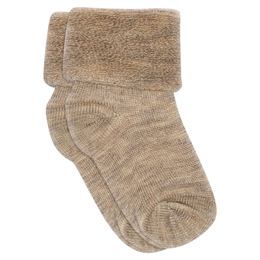 Frotté strømper i uld til de små. Strømpen har ekstra elastik ved anklen, så strømperne ikke falder af.