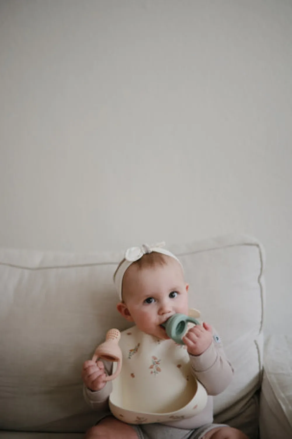 Med sit lille håndtag passer den perfekt ind i dit barns små hænder og introducerer sikkert dem til nye smage og konsistenser.