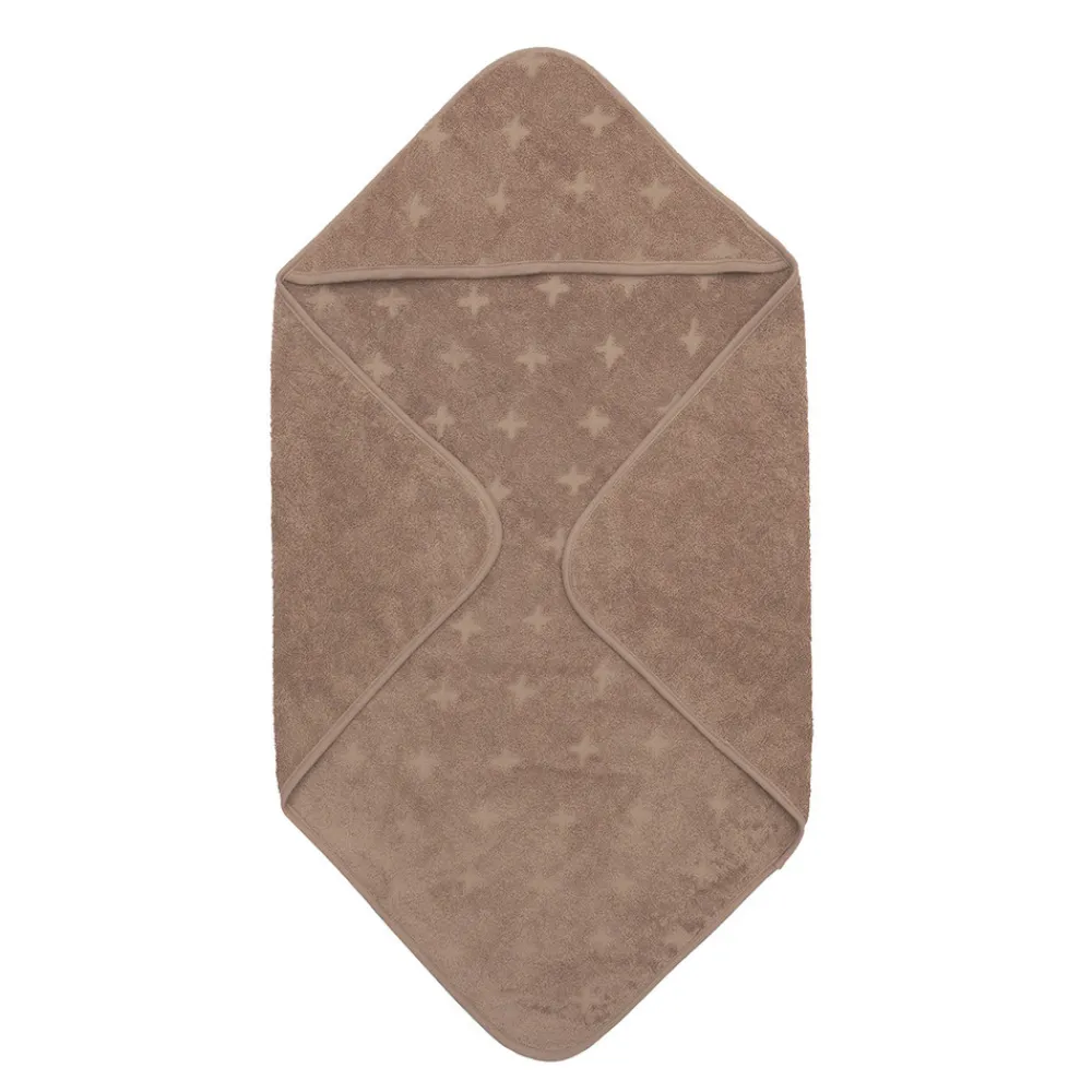 Babyhåndklæde med hætte og krydsmønster. Dejlig blødt og perfekt til de små da man kan pakke dem godt ind fra top til tå. 100 x 100 cm.