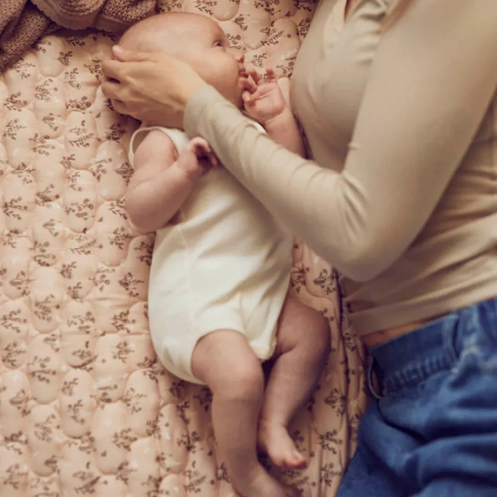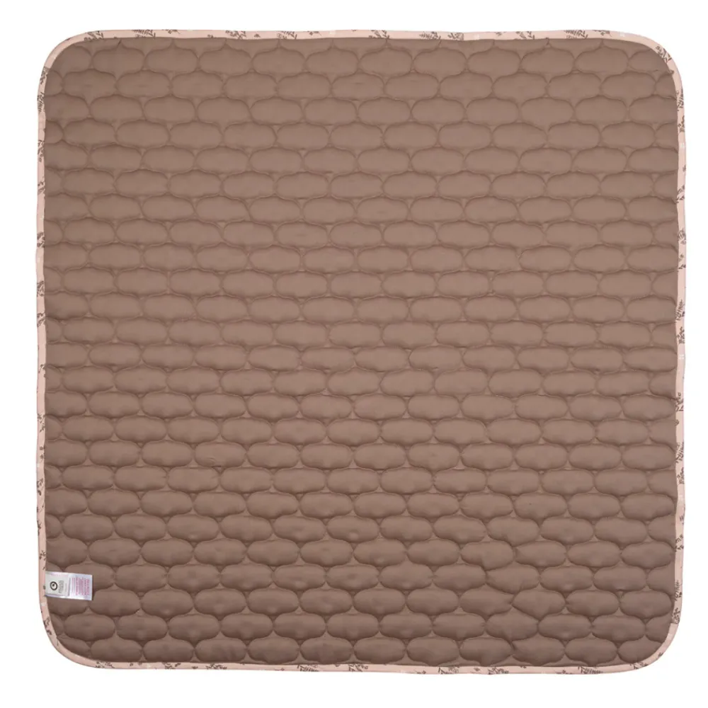 Smukt og praktisk tæppe med smukt print på forsiden og ensfarvet stof på bagsiden. Tæppet har lækkert fyld for at give tæppet en tykkelse der gør at det er behageligt at ligge på når baby ligger og leger på gulvet. Tæppet måler 90×90 cm.