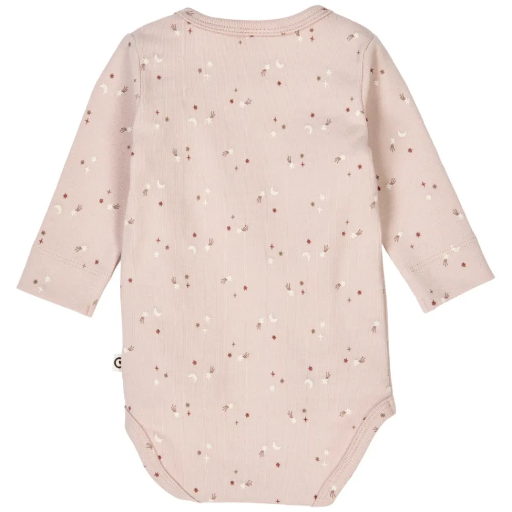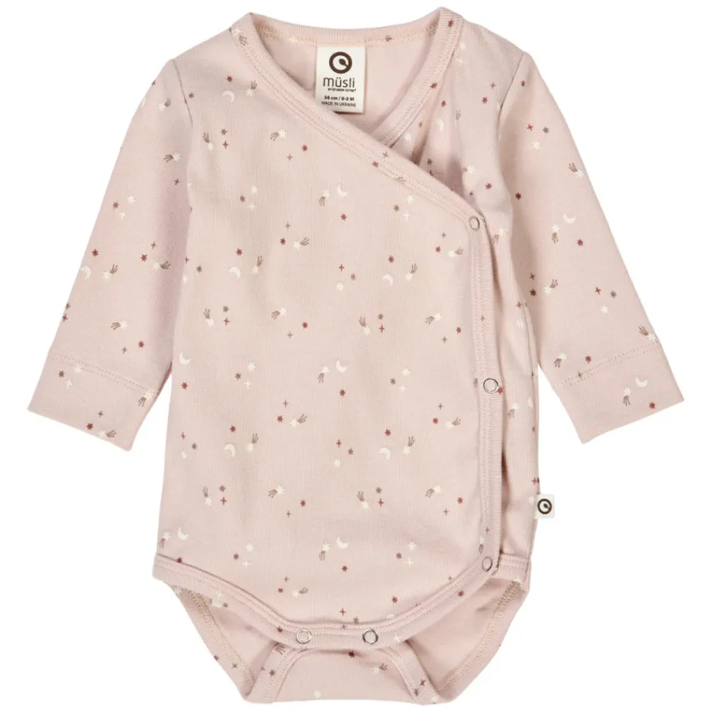 Stars Rib Wrap Body fra Müsli er en skøn og blød body, der er perfekt til din babys sarte hud. Den er lavet af 100% økologisk bomuld og er GOTS-certificeret, hvilket sikrer, at både miljø og dit barns velvære er i fokus. Det praktiske wrap-design gør det nemt at tage bodyen af og på, uden at skulle trække den over barnets hoved. Ribstrukturen giver ekstra strækbarhed og komfort, så dit barn kan bevæge sig frit hele dagen. Med Müsli får du både kvalitet, funktionalitet og et tidløst design, der passer til enhver garderobe.